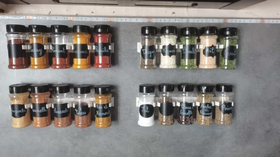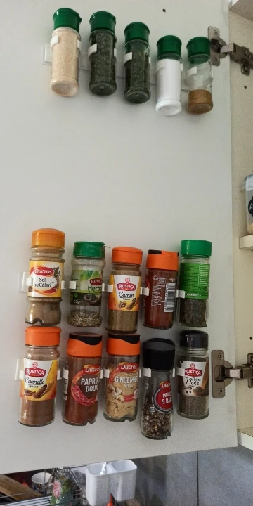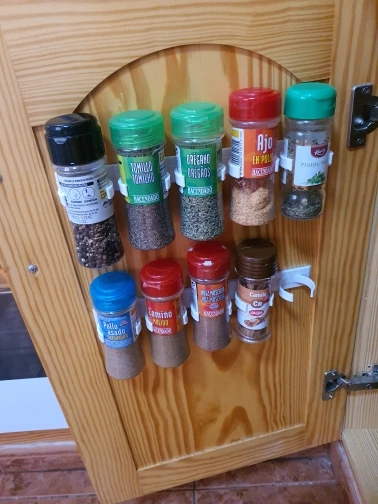 * Spice gripper clip strips trzymaj każdy indywidualny słoik na przyprawy, więc nawet rzadko używane przyprawy są łatwe do znalezienia. Zamieni twoją brudną spiżarnię w zorganizowaną, * Łatwy w instalacji: wyposażony w mocny klej w paski. Możesz przykleić go do ściany, drzwi do szafki kuchennej lub wewnątrz drzwi kuchennych. * Doskonały do oszczędzenia miejsca: usuwa dużo miejsca w szafce. Ten stojak jest bardzo poręczny i skuteczny dzięki plastikowemu pojemnik na przyprawy. * Wytnij paski na dowolna długość, aby pasowały do twojej przestrzeni, zorganizuj swój pojemnik na przyprawy, tak jak robi to stojak na przyprawy. * Sposób na utrzymanie wszystkich przypraw używanych do gotowania wygodnie położonych i łatwych do znalezienia. Materiał: tworzywo sztuczne Kolor: biały Rozmiar: 25*2.5*4cm Ilość: 2 lub 4 sztuk/zestaw (5 haczyków/1 szt.) Pakiet zawiera: 2 lub 4 sztuk/zestaw stojaki na przyprawy
