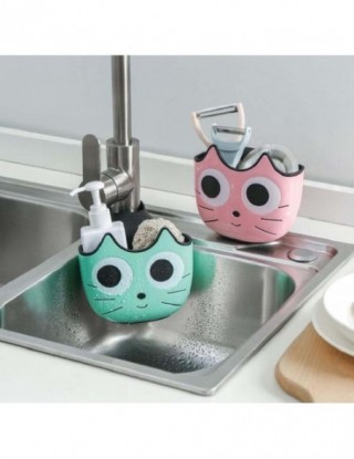 Słodki kociak kształt półka nad zlewozmywak mydło gąbka spustowy stojak uchwyt łazienkowy kuchnia przechowywanie przyssawka orga