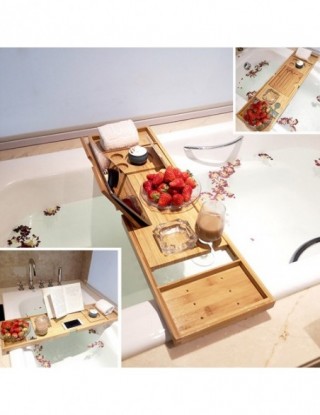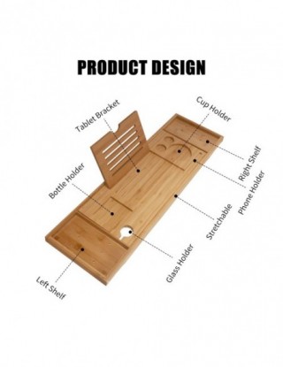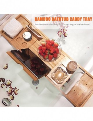 Wanna caddy taca zbudowana jest z bambusa, pokryta warstwą lakieru do długiego użytkowania. Wanna caddy taca ze stojakiem do czytania i pojemnik na wino na akcesoria spa. Specjalnie zaprojektowana rozciągliwa wanna caddy taca pasująca do większości wanien dostępnych na rynku. Taca do wanny zaprojektowana tak, aby pasowała do wszystkich twoich potrzeb.