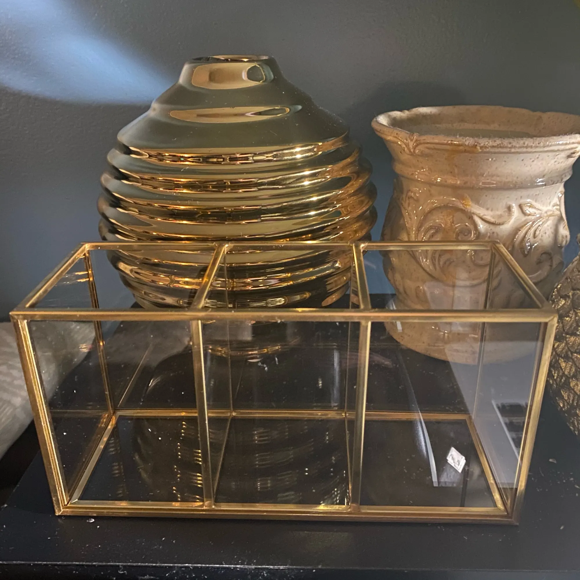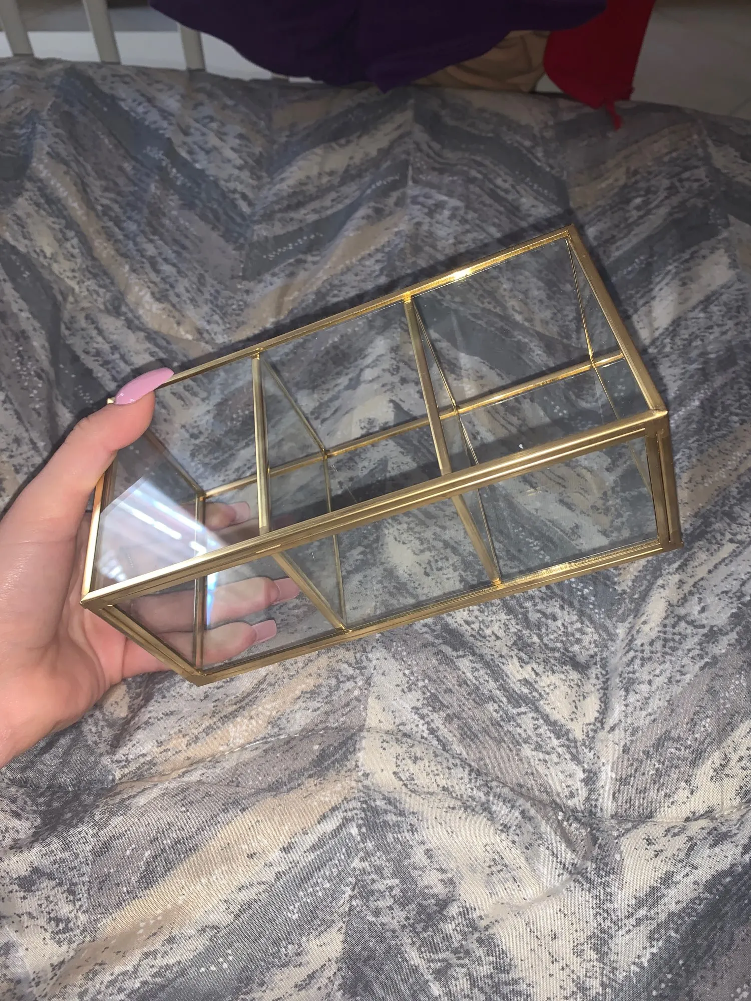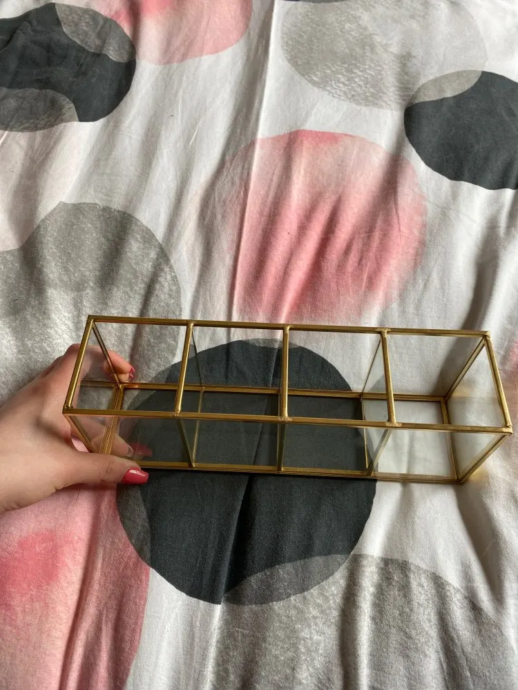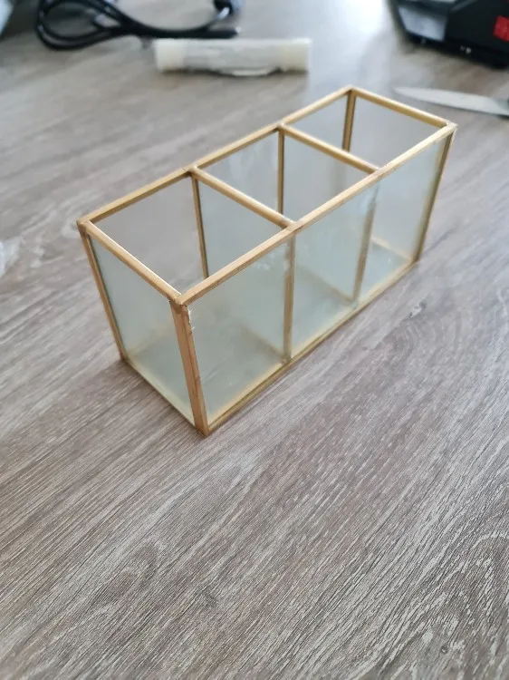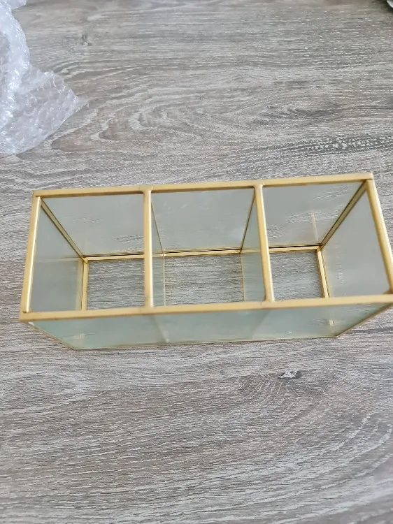 1, szklany materiał: produkt to prosta i innowacyjna szczotka do szyby pojemnik z przegródkami. 2, czysta przestrzeń: pojemnik na pędzle do makijażu niech twój dom nie będzie już brudny i przynosi czystą przestrzeń. 3, modne i luksusowe: krystalicznie czyste szkło pasuje do miedzianej krawędzi, modne i luksusowe. 4, wytrzymałe i mocne: miedziana krawędź jest ręcznie spawana, wytrzymała i mocna. Pudełko jest piękne i trwałe. 5, kształt geometryczny: w kształcie geometrycznym schowek jest bardzo prosty i atrakcyjny. Specyfikacja: Materiał: miedź, szkło Proces: spawania ręcznego Styl: prosty Kolor: cupreous Rozmiar: około 18*9*7cm/7.08*3.54*2, 75in