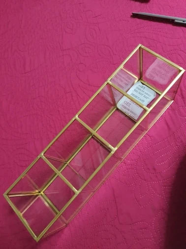 Reçu en 12 jours en France en bon état, très bien emballé. Quelques défauts sur l’armature dorée (voir photo) on voit bien que ça a été camouflé avec du feutre doré... Pour le prix ça me convient mais c’est quand même dommage