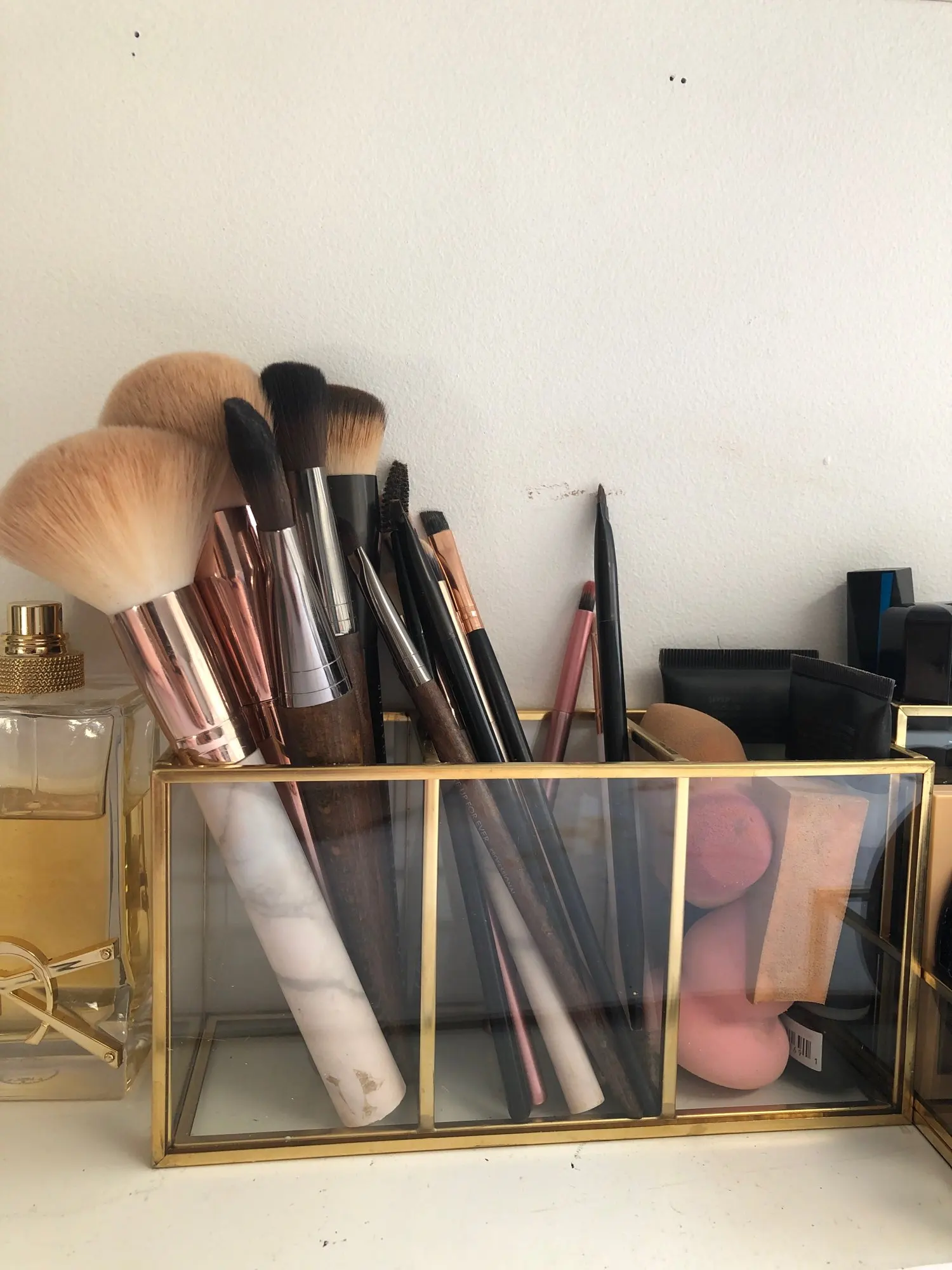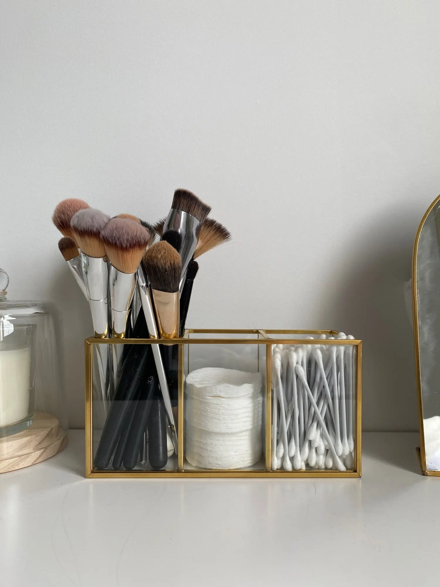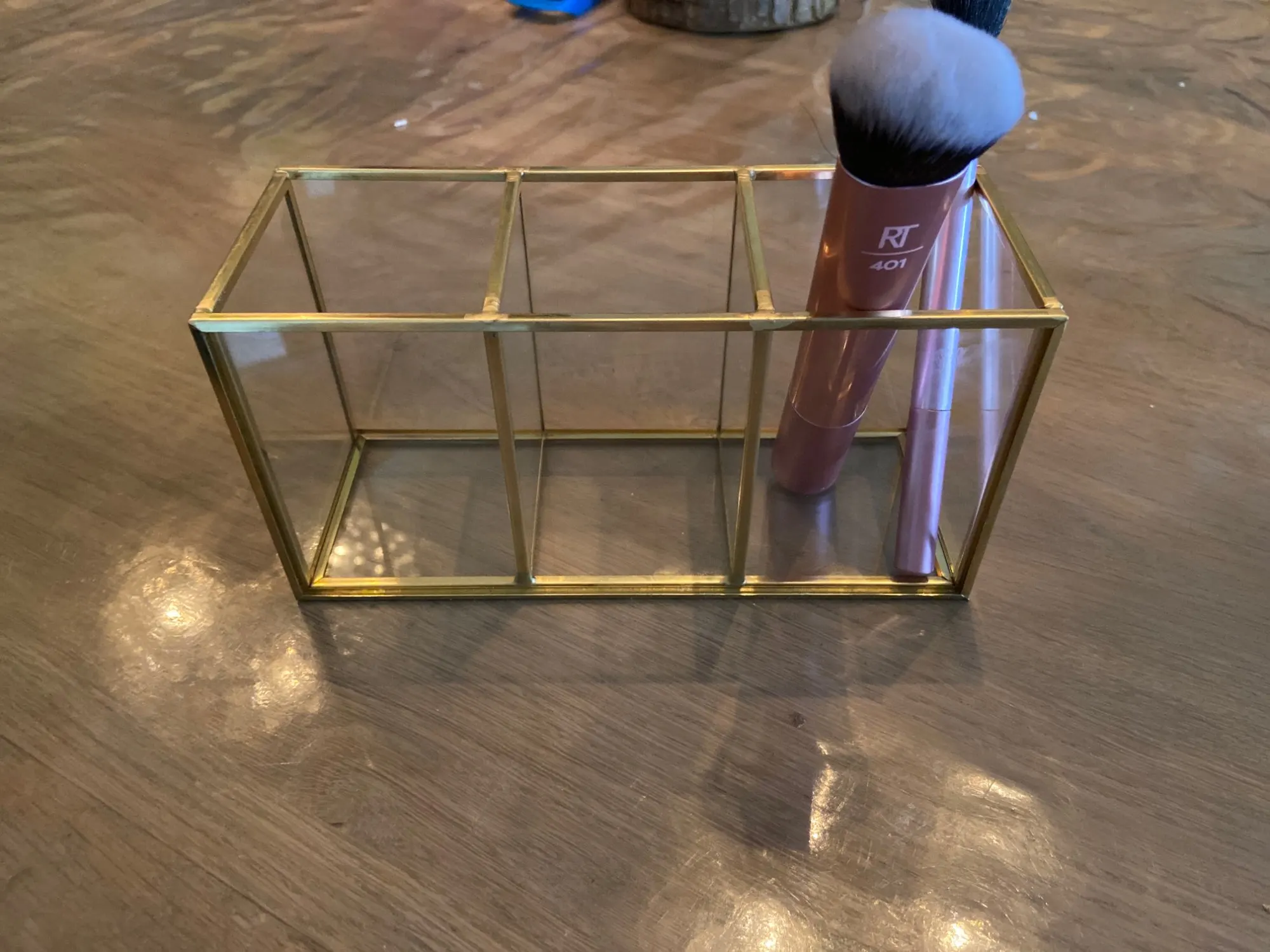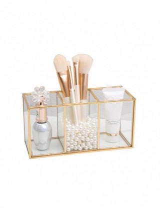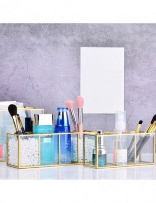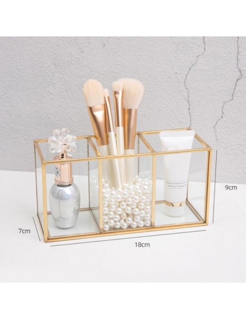 Przezroczysty szklany pojemnik na pędzle do makijażu Box złoty pojemnik kosmetyczny pierścień ołówek etui na szminki pędzle do makijażu organizator