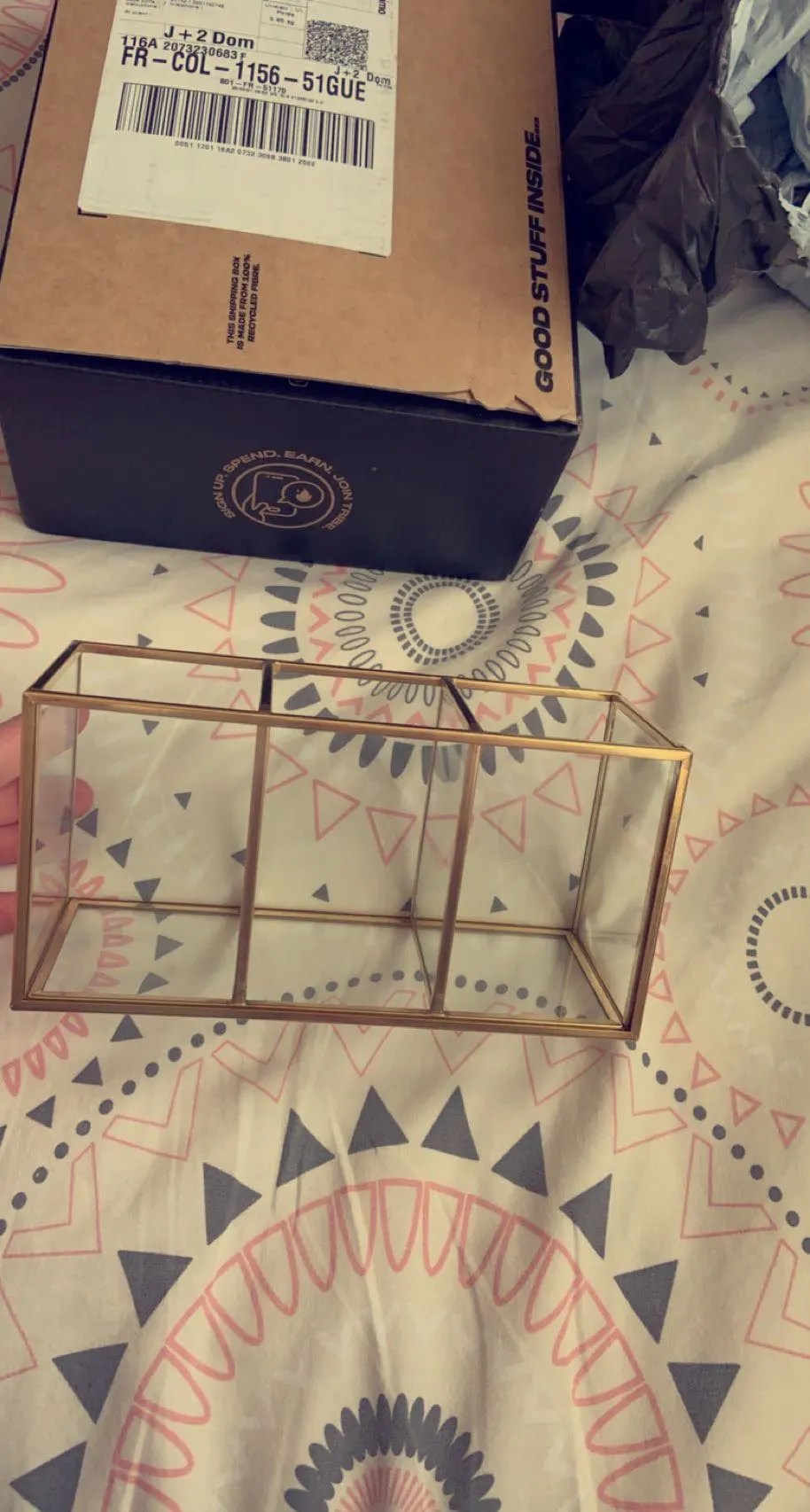 Très belle boîte elle est très bien emballée, elle n’est pas du tout abîmée. Par contre le livreur ne me l’a pas donner en main propre il l’a juste laissé devant ma porte à la vue de tout le monde sans même sonner.