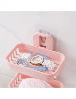 2019 łazienka przyssawki mydelniczki plastikowe uchwyty naścienny dwupokładowy kreatywny drenaż przechowywanie mydła podwójne stojaki