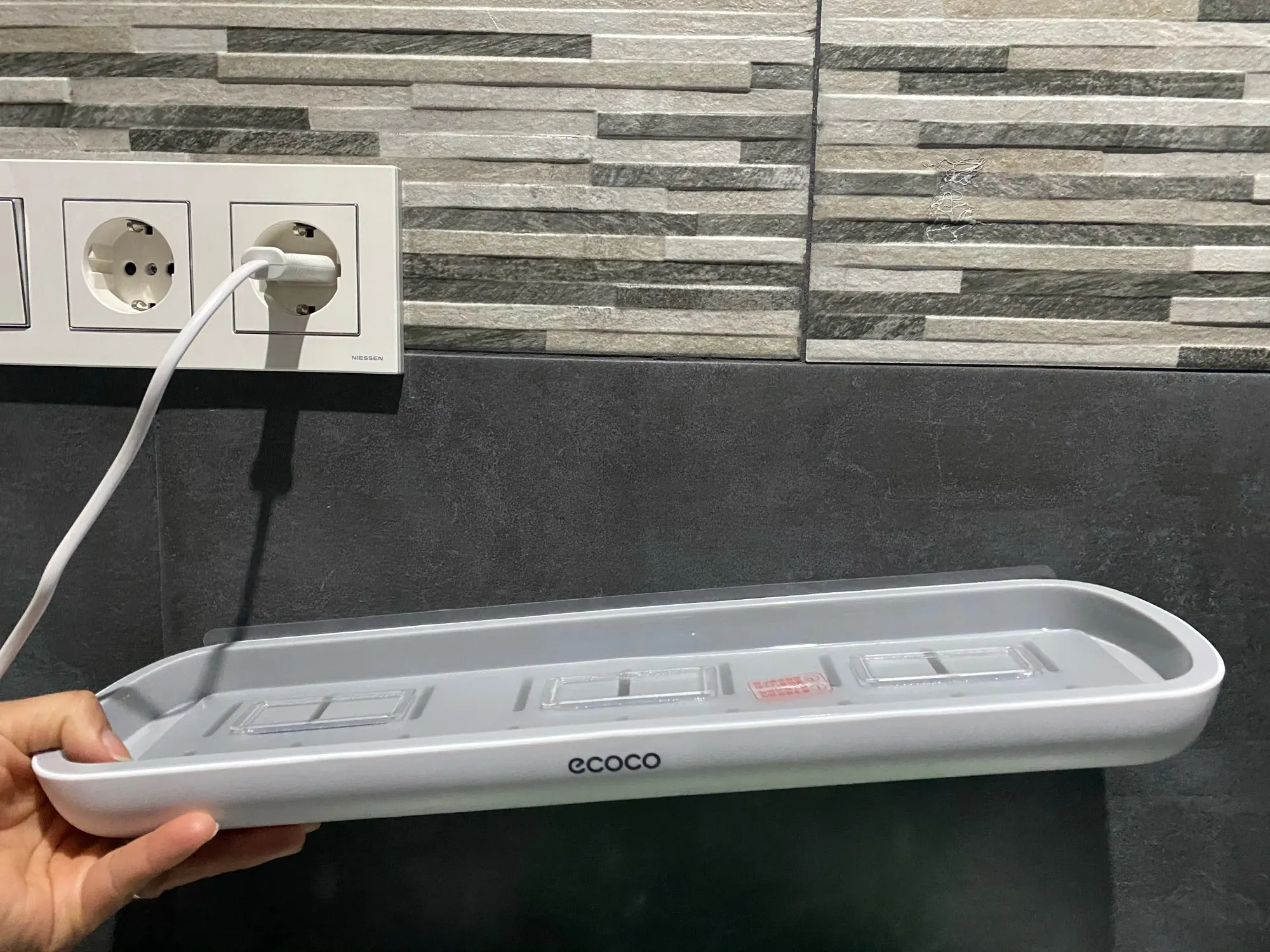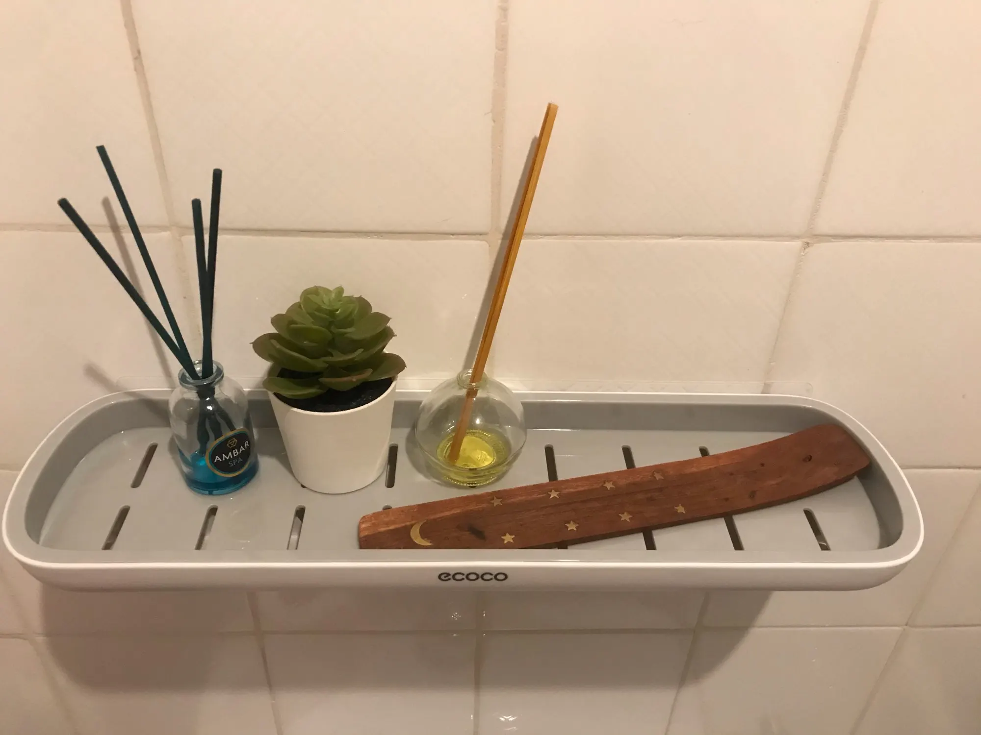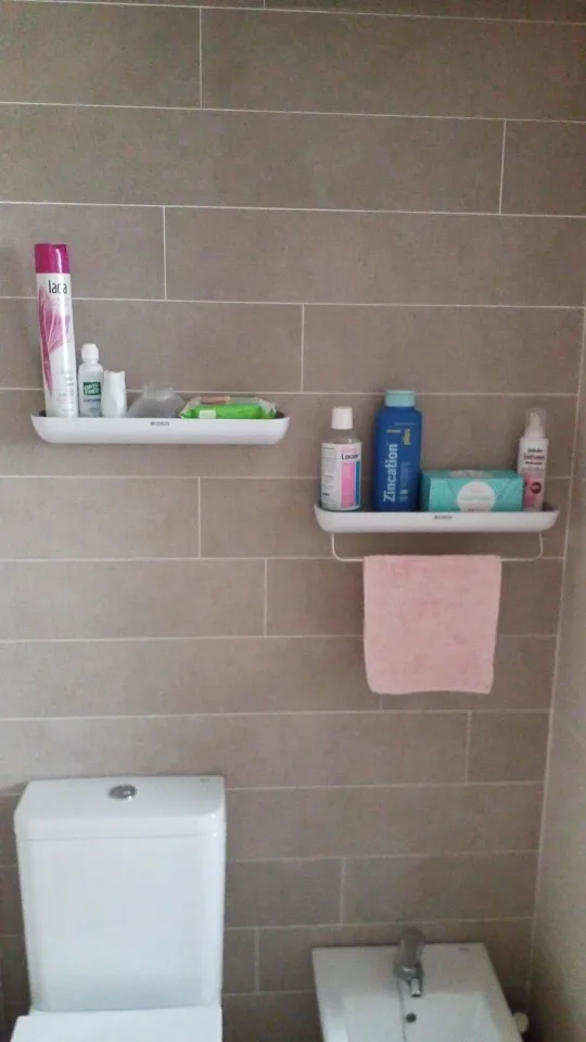 Producto muy bonito y de calidad. Vino muy bien empaquetado. Lo usé para ordenar esas cositas sobre el inodoro y que quedase más lindo todo. Además así no estorbaban ahí. Pedí dos cositas más del mismo vendedor a juego y ha quedado muy bonito todo. El adhesivo se ve resistente y tras dos semanas de uso, todo sigue en su lugar.