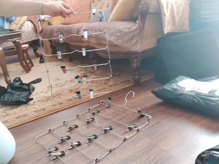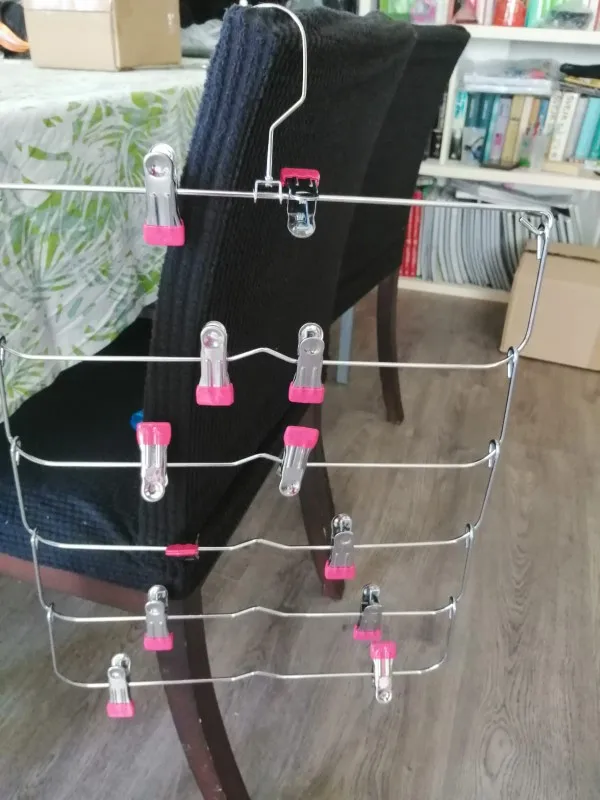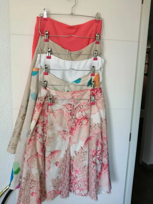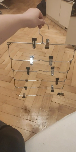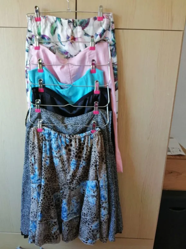 Perfektní ramínka na sukně. Pohodlné. Kolíčky jsou z příjemného materiálu a mají pevný stisk. Sukně neklouzou. Kolíčky se dají posouvat. Vypadá to přesně jako na obrázku. Kupují už to celé rodině. Dorazil za necelé tři týdny naprosto v pořádku. I recommend.