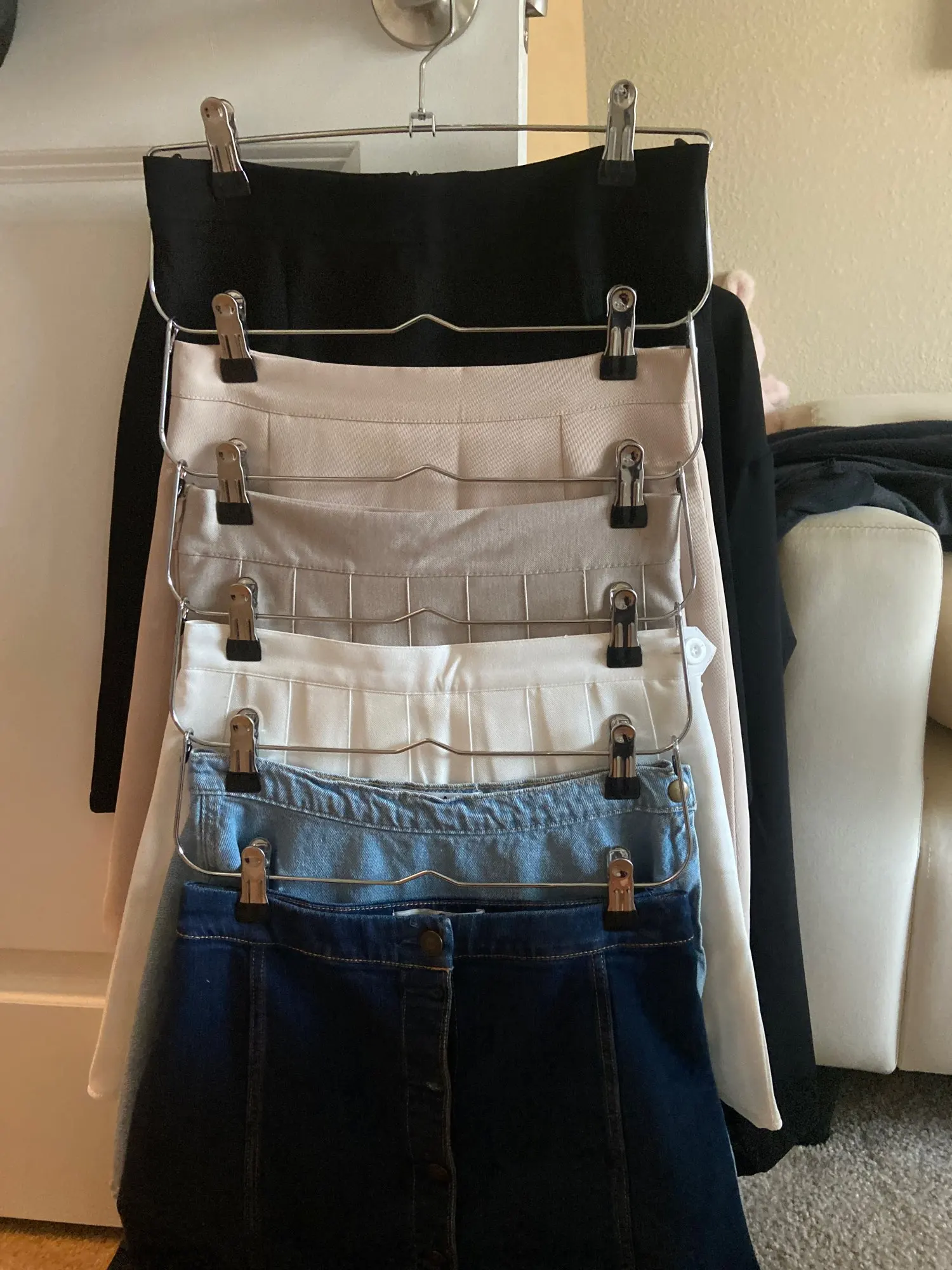Looks great, exactly what I wanted. Can't wait to hang my skirts here. Looks very convenient. Many thanks seller!