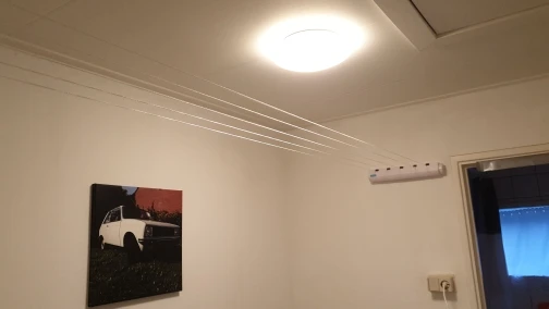 Kompaktowe wysuwane linie ubrań zapewniają dużo miejsca na pralnię.