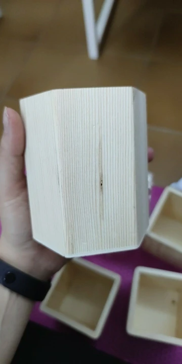 Materiał: drewno rozmiar: 01: 8*8*10 cm 02: 8*10 cm (średnica * wysokość) 03: 8*10 cm (średnica * wysokość) waga: 100g (w przybliżeniu)