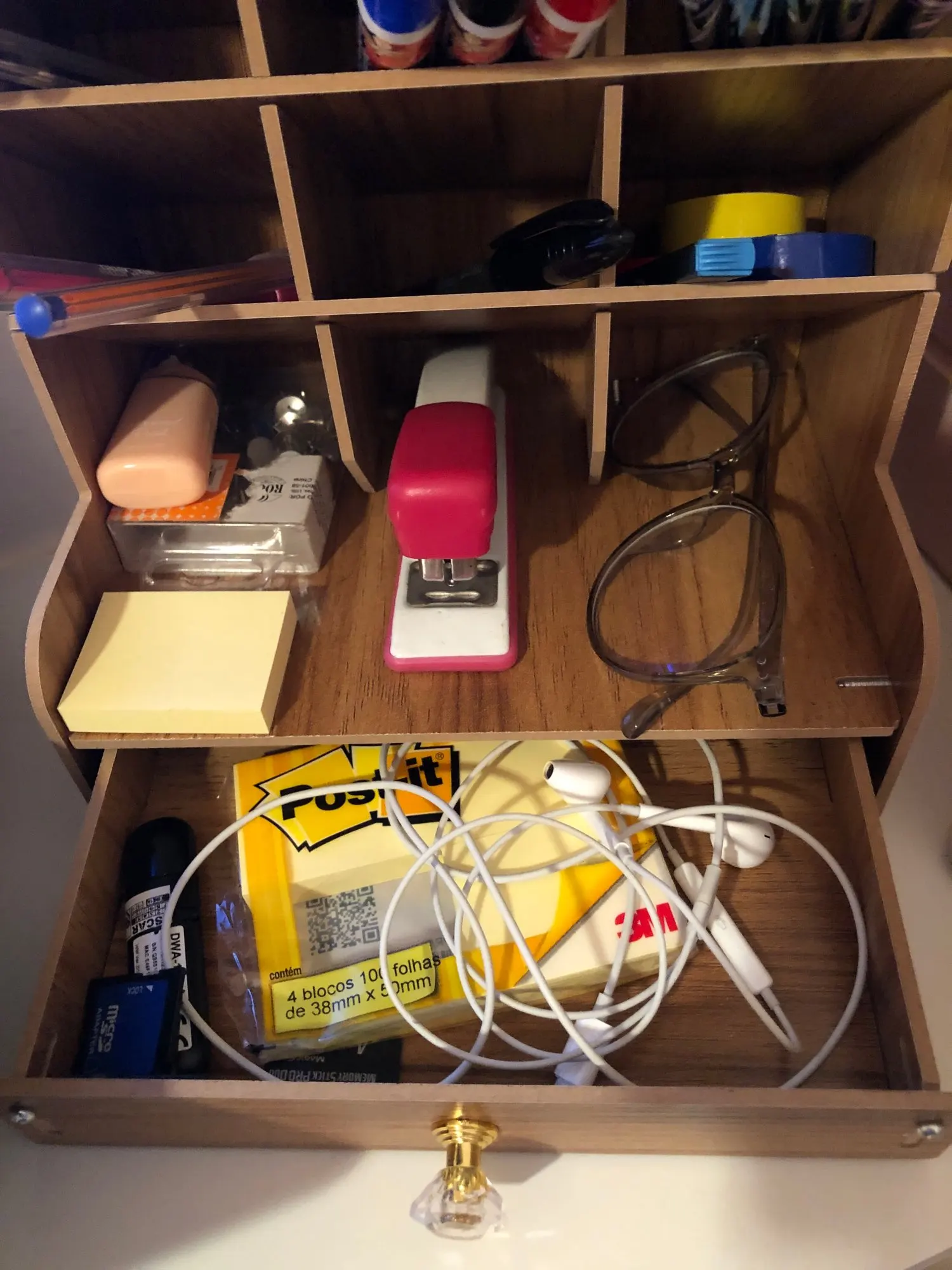 Excelente produto. Vem desmontado mas não demorei mais 5 minutos para montá-lo. Ainda ganhei um porta celular. A galerinha cabe bastante coisa. Recomendo muito!