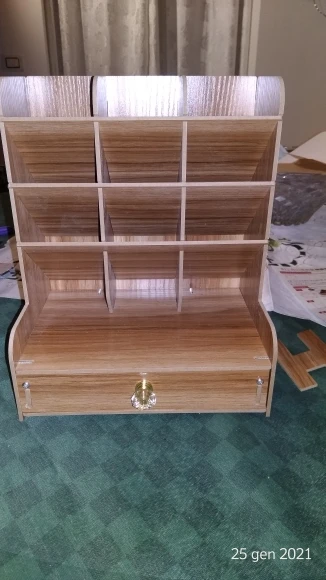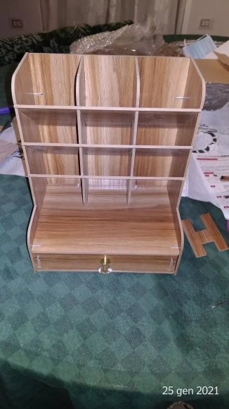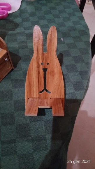 Sono felicissima di questo prodotto. Esattamente come descritto. In vero legno. Facilissimo da montare viene fornito già completo di cacciavite. ci sono delle istruzioni facilissime,pochi minuti ed è pronto. Venditore gentilissimo,in regalo ho trovato anche un supporto per cellulare a forma di coniglietto. Bellissimo. Lo consiglio