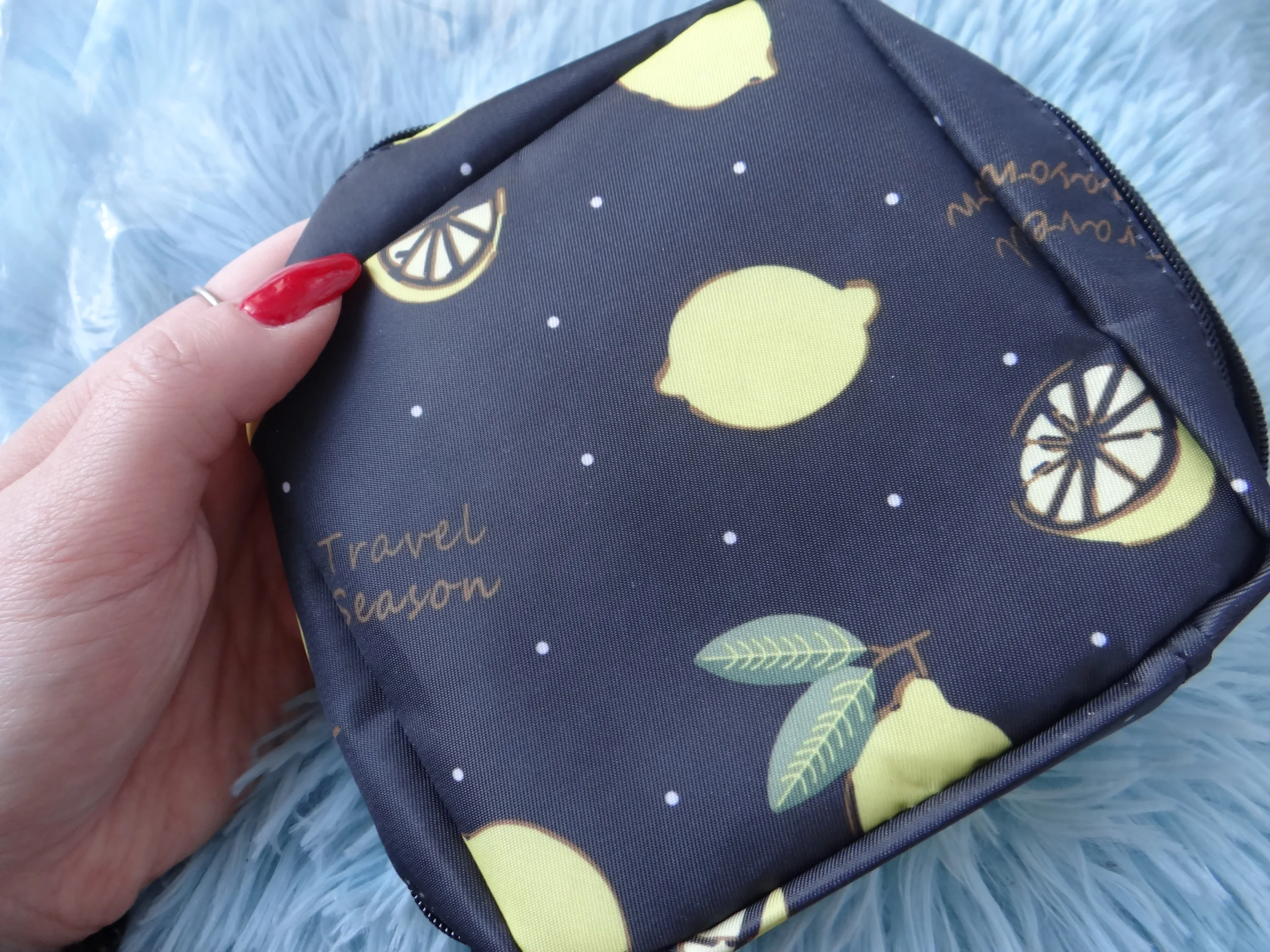 Ma dużą pojemność i może pomieścić nie tylko podpaski higieniczne, ale także kosmetyki i inne drobne przedmioty.