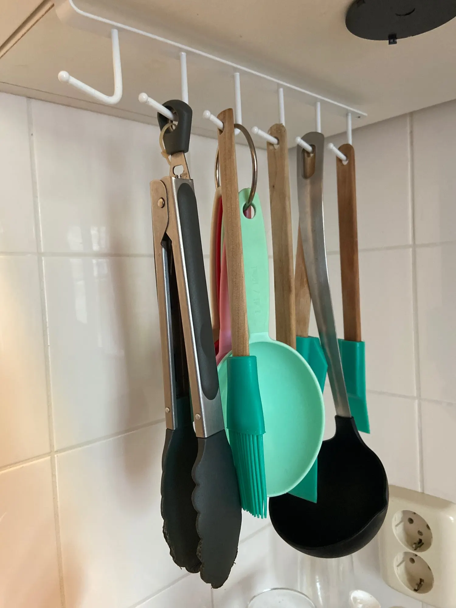 Handig als je weinig ruimte heb in de keuken. Ik heb het grote kookgerei eraan hangen zodat mijn lade niet zo vol zit.