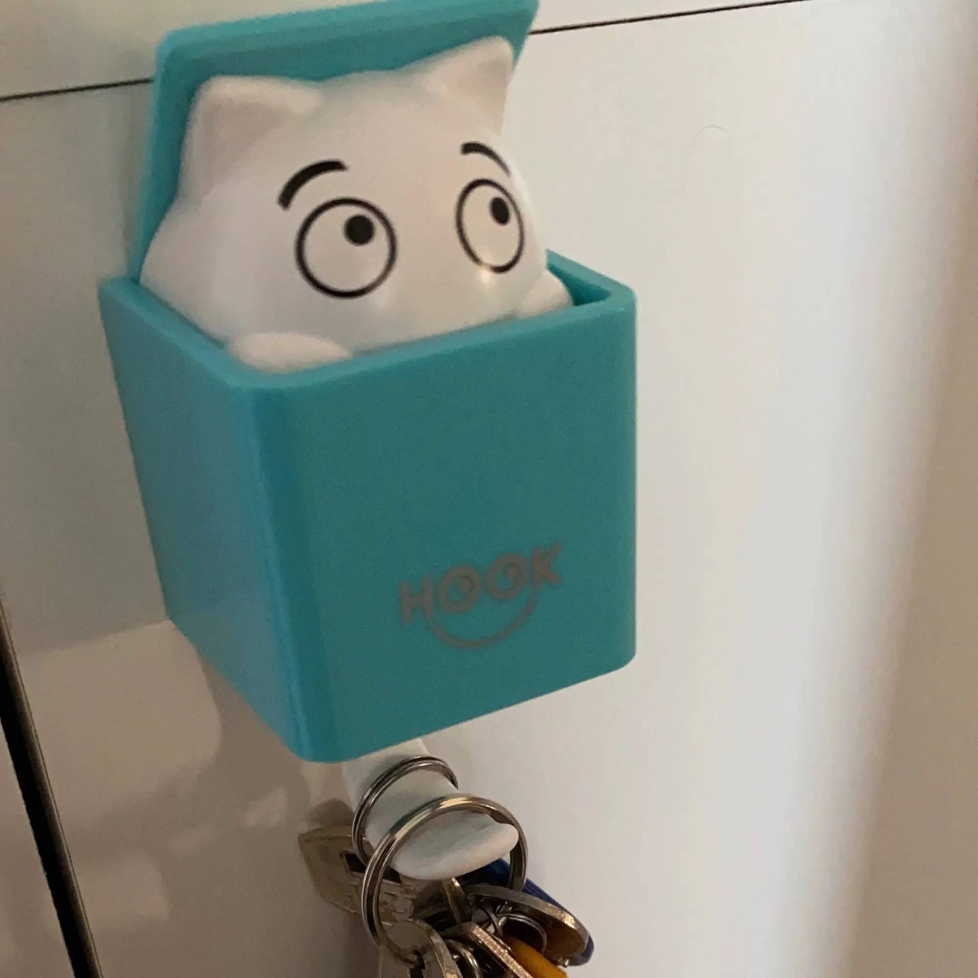 Muy practico para organizar las llaves, con apenas 3 llaves es suficiente peso para que salga el gatito, y luego vuelve a cerrarse al quitar las llaves sin necesidad de empujarlo