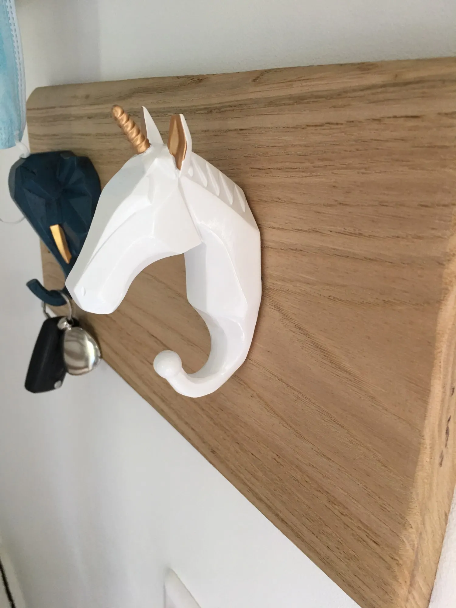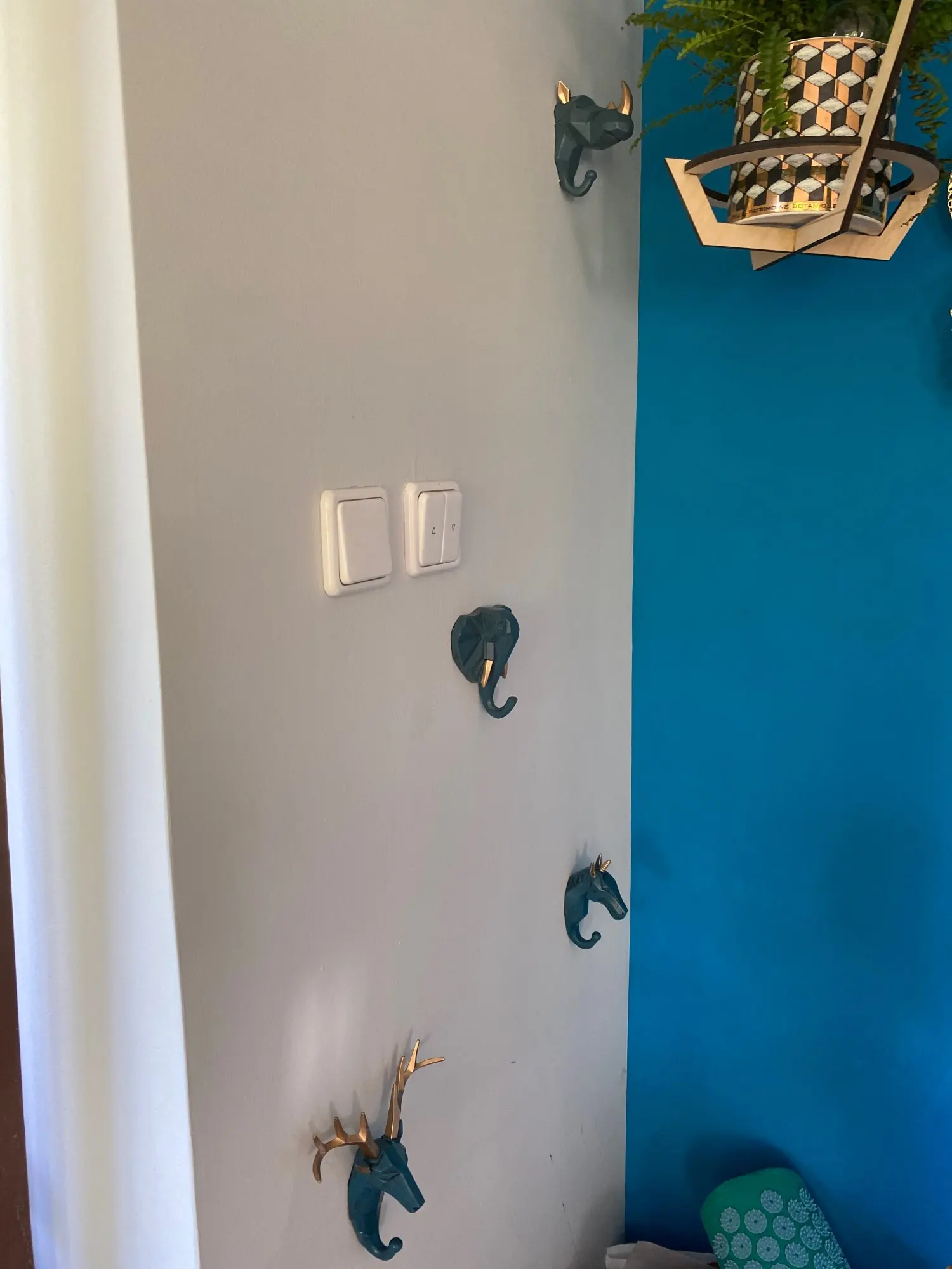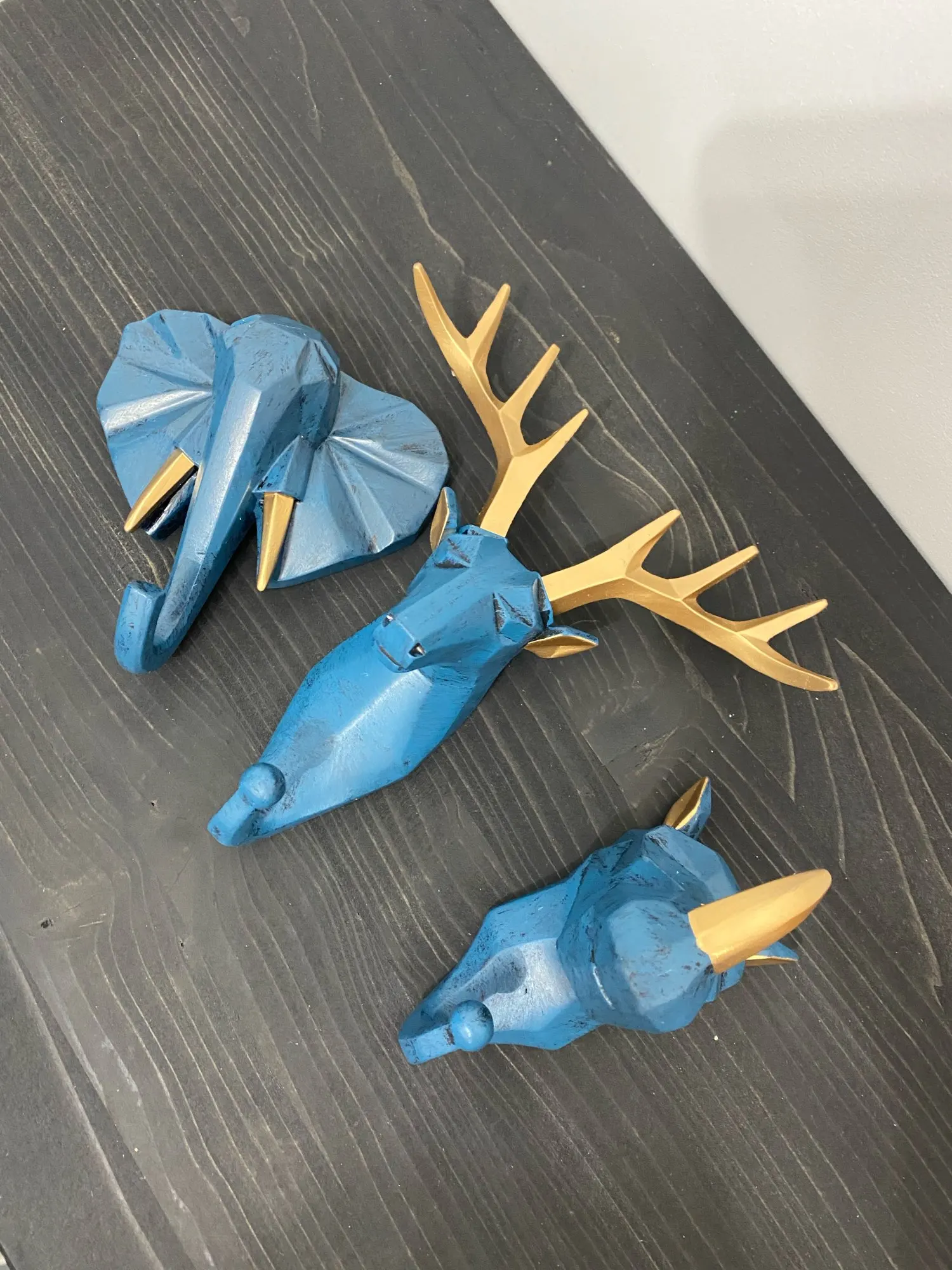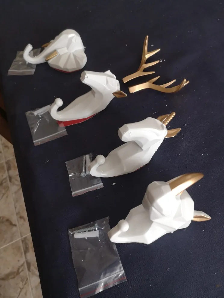 Очень крутые крючки! В комплекте двухсторонняя липучка по форме и саморез с дюбелем. Они довольно крупные, хотела все три в туалет, но перебор был бы. В итоге оленя в туалет повесила, а носорога и слона в душевую. Цвет очень классный синий, чуть в морскую волну
