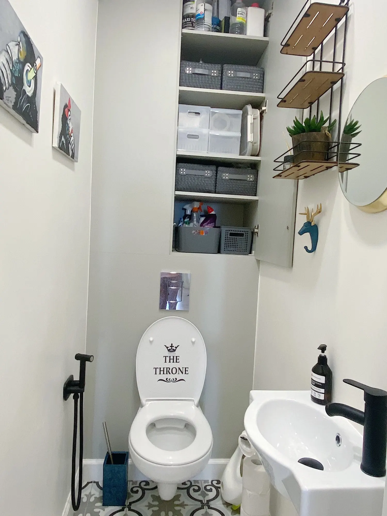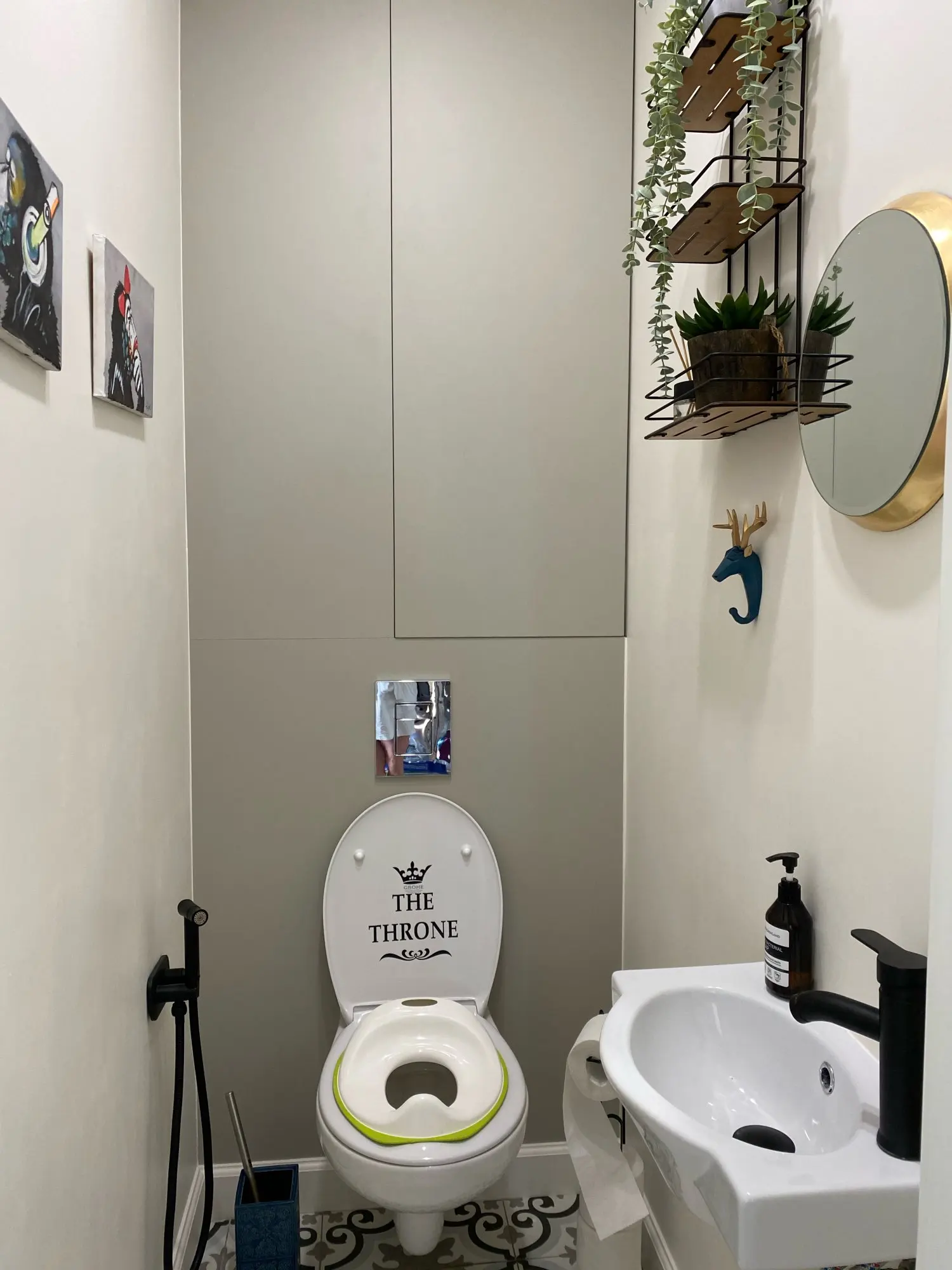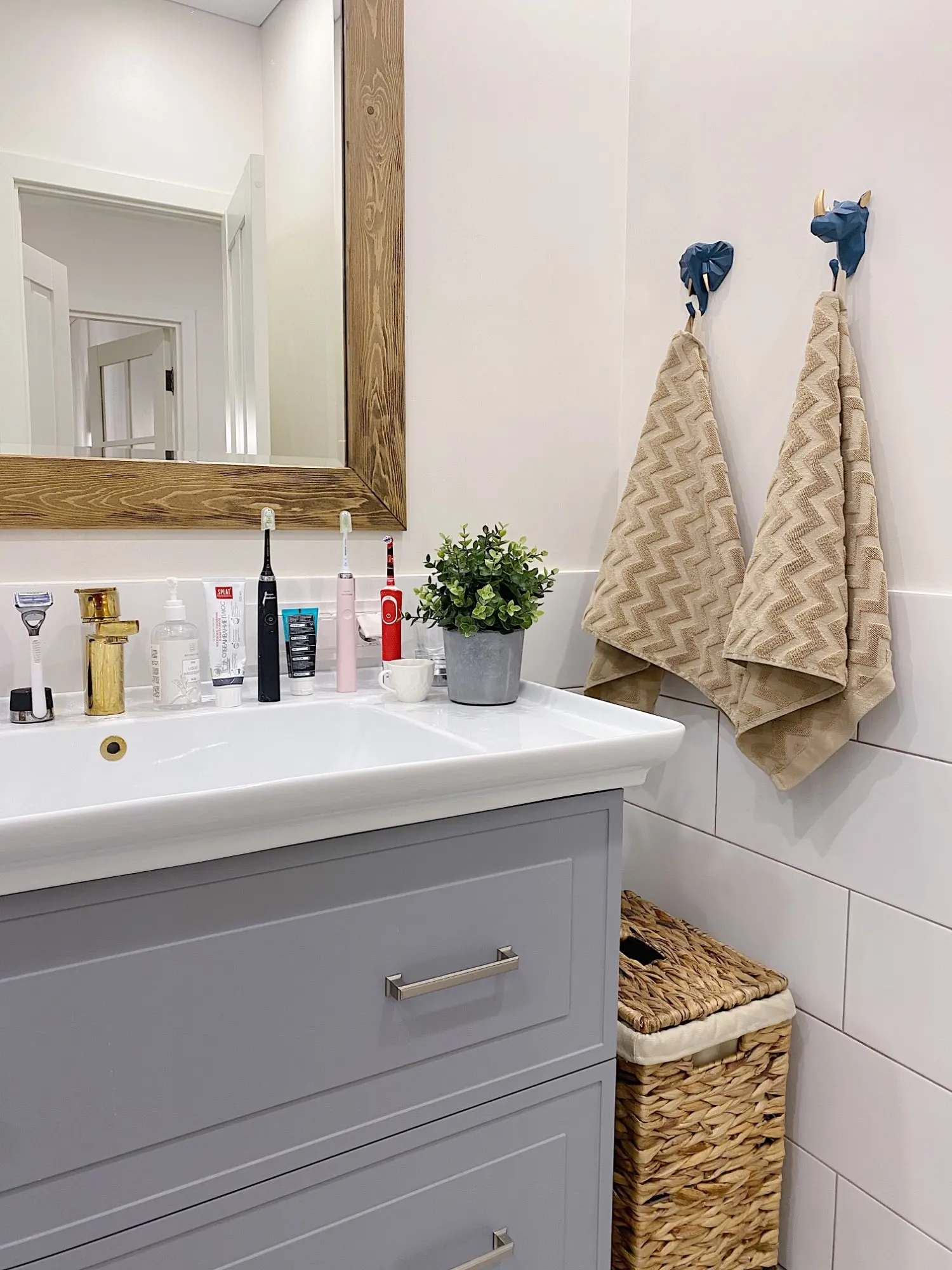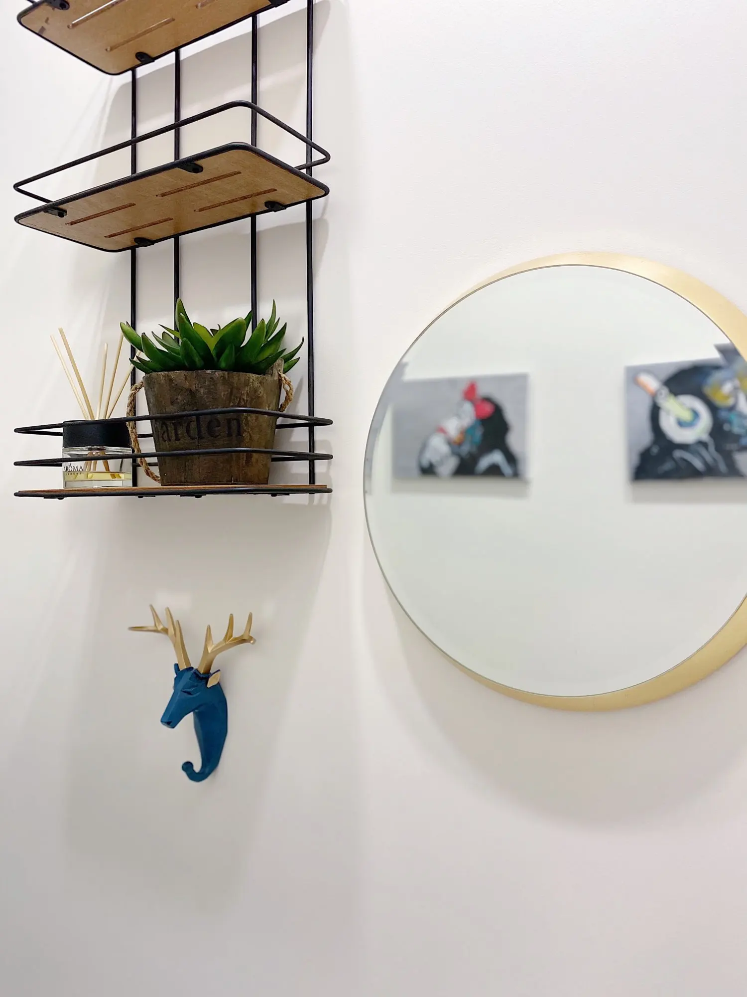 Очень крутые крючки! В комплекте двухсторонняя липучка по форме и саморез с дюбелем. Они довольно крупные, хотела все три в туалет, но перебор был бы. В итоге оленя в туалет повесила, а носорога и слона в душевую. Цвет очень классный синий, чуть в морскую волну