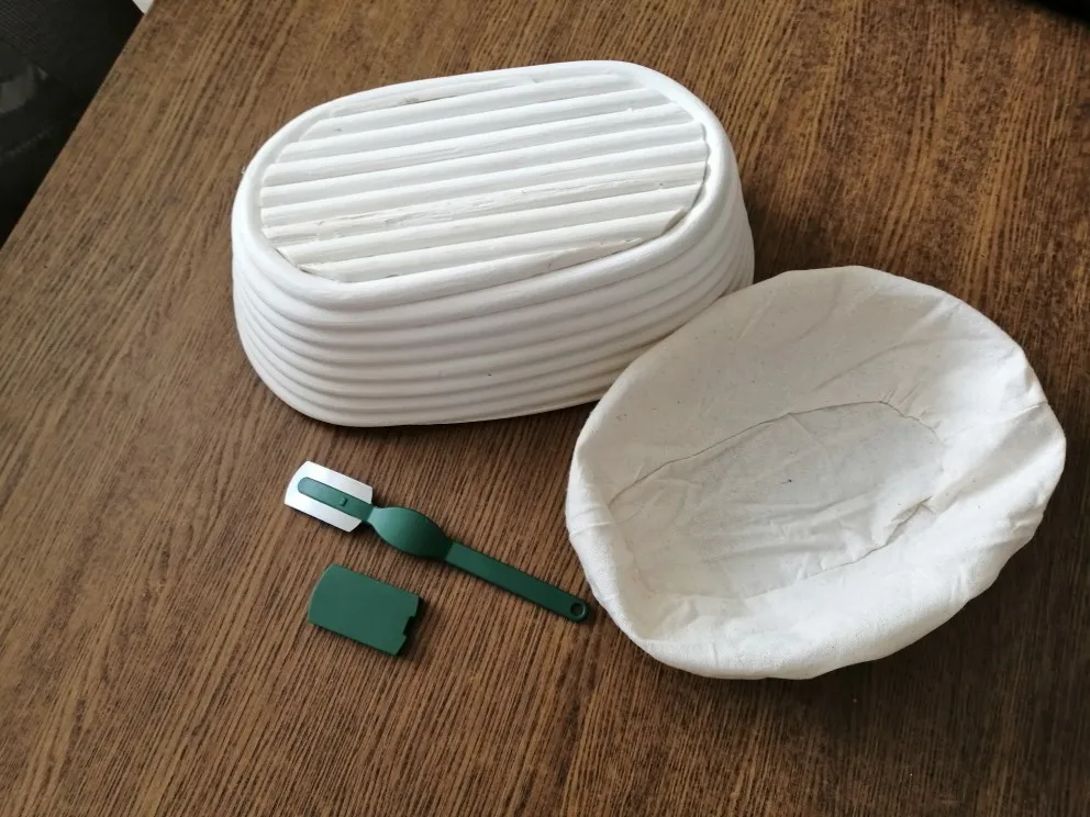 1 * kosz rattanowy + 1 * pokrowiec z materiału + 1 * zielony plastikowy krajalnica do pieczywa