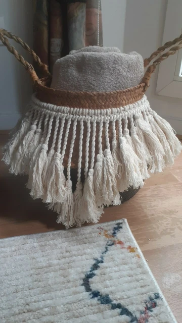 Pakiet zawiera: 1 x wiszący kosz na kwiaty + makrama (bez kwiatu) Uwaga: zawieszka z makramy jest przymocowana do uchwytu kosza zamiast być przywiązana wokół kosza.