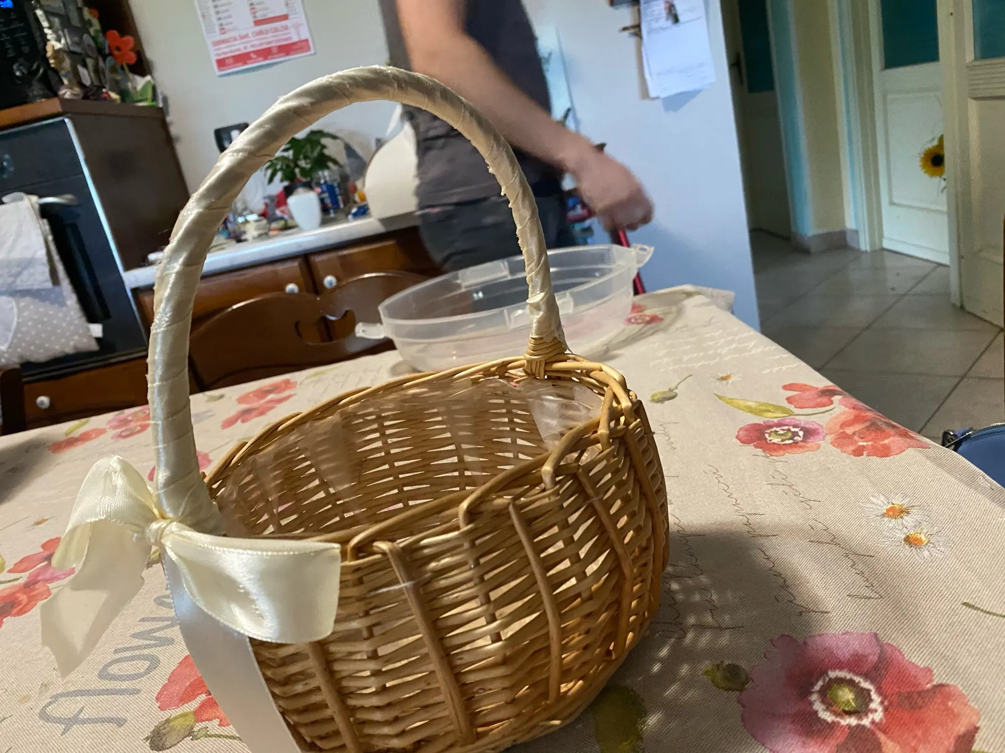 Dane techniczne: Nazwa produktu: kosz na kwiaty Materiał: wierzba Ilość: 1 Pc Rozmiar: S: średnica 15cm, wysokość: 8cm L: średnica 19cm, wysokość: 10cm Kolor: brązowy