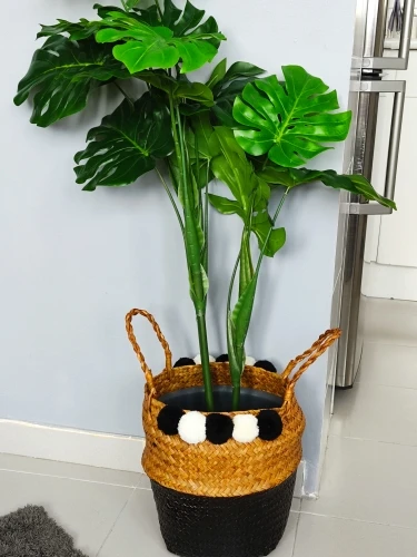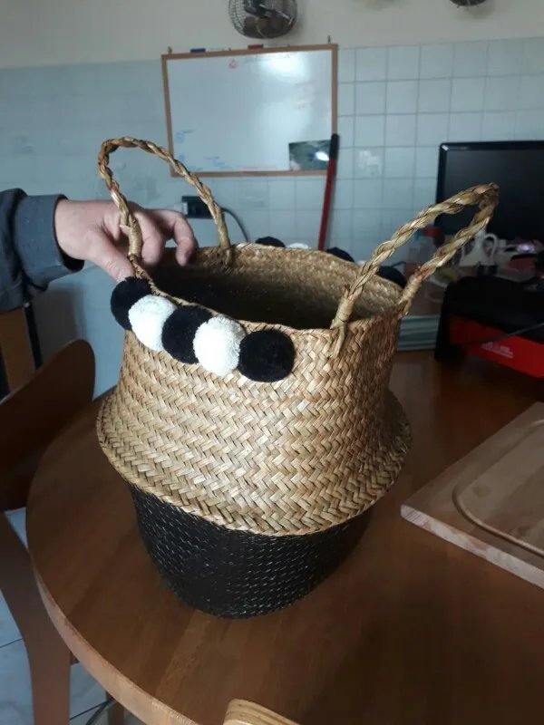Kreatywny Nordic netto czerwony kwiat bambusa kosz słomy przechowywania kosz doniczka organizator wiklinowy tkany kosz Organizador Cocina