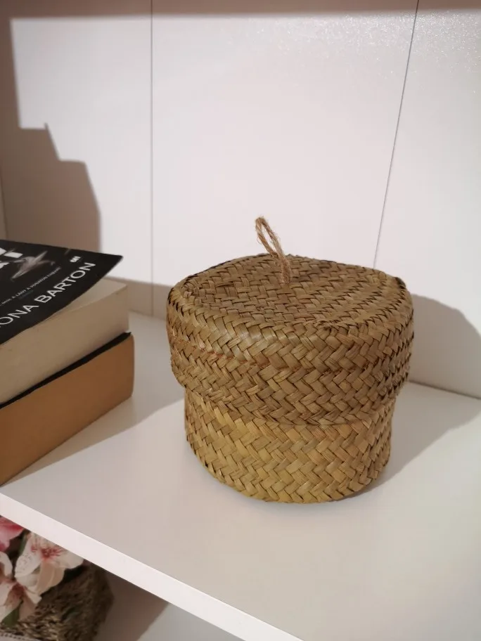 Ręcznie robiony kosz do przechowywania Cachepot do kwiatów tkactwo tkany pojemnik ratanowy pojemnik pudełko kosz naturalny pojemnik na przekąski okrągłe pudełko