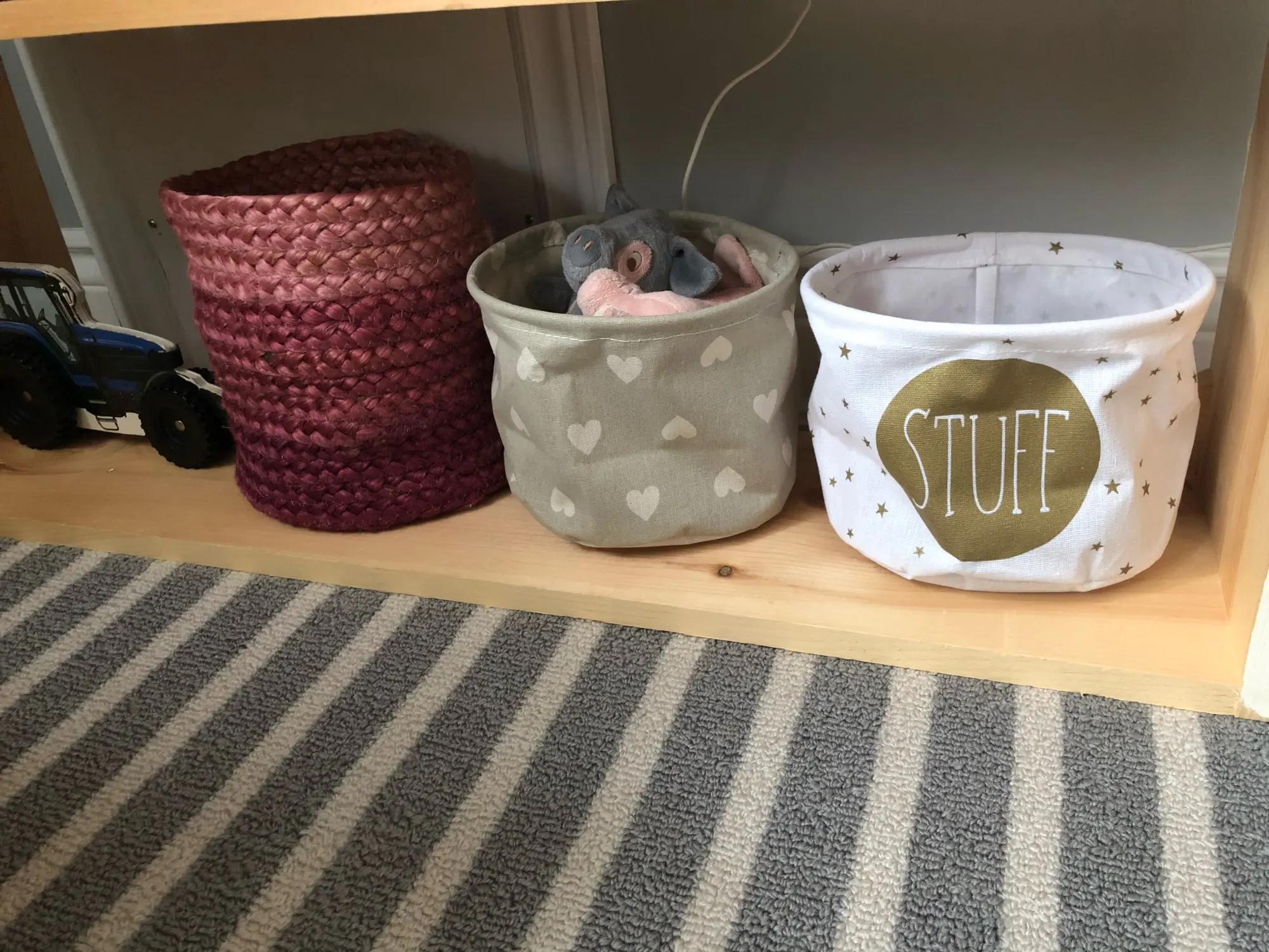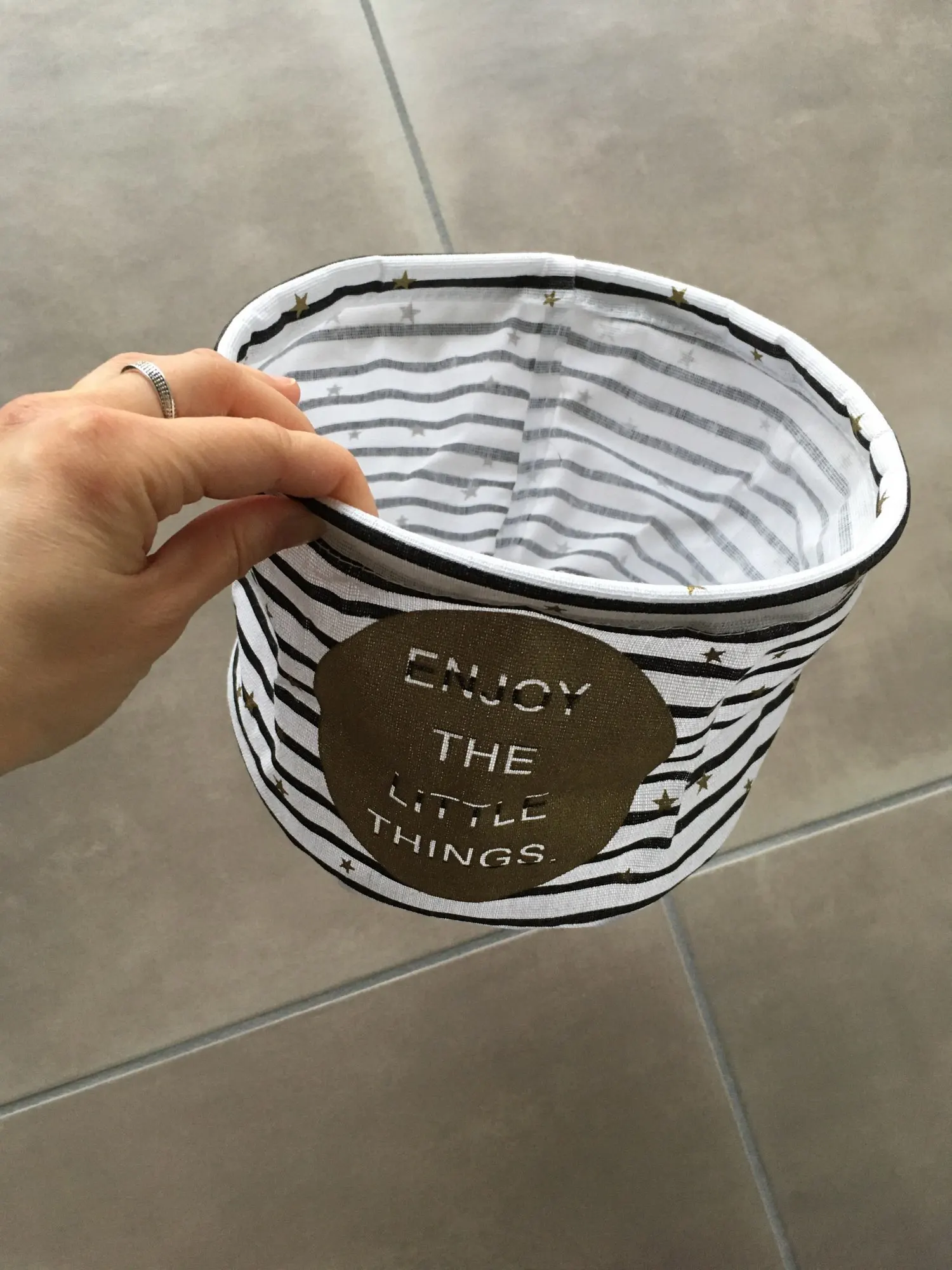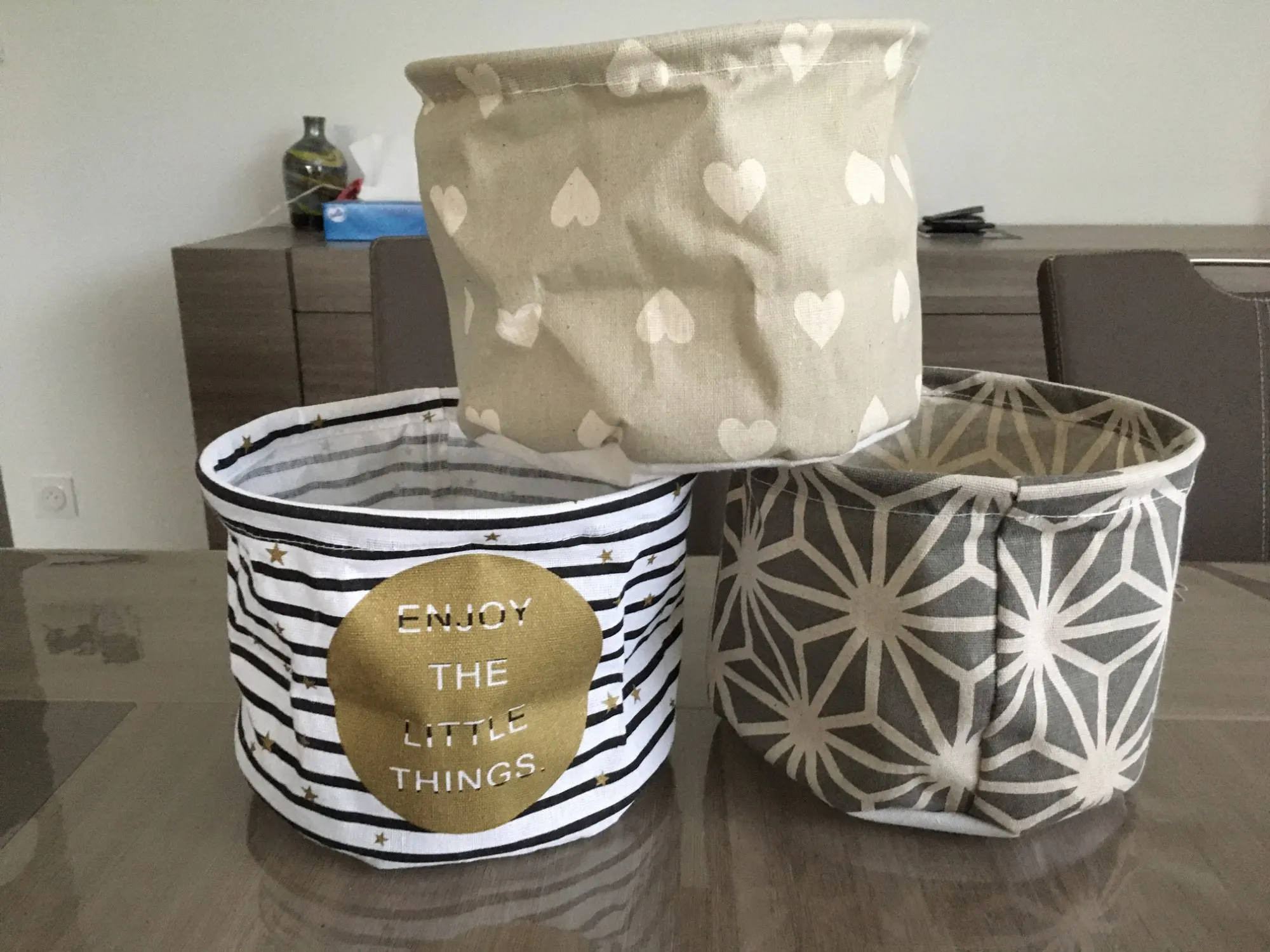 Le produit est conforme les motifs sont jolis, juste une tache au fond d’un des deux paniers dommage
