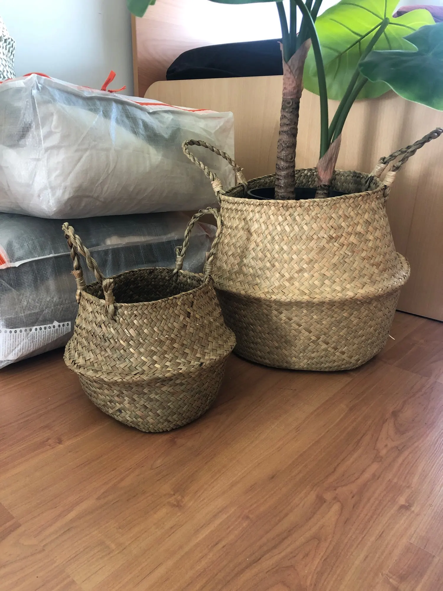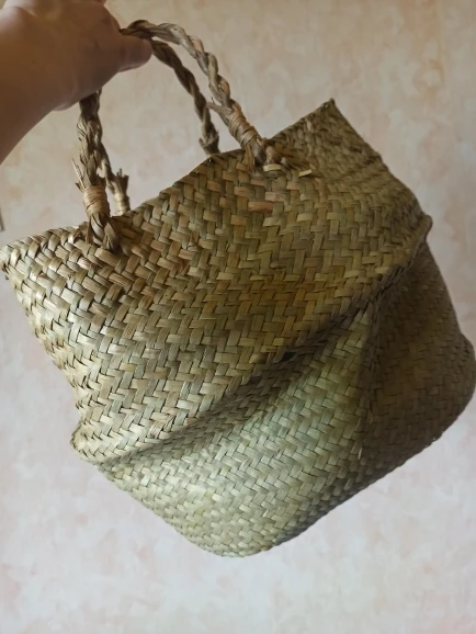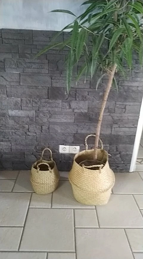 Ręcznie robiony bambusowy kosz do przechowywania składany Clthoes kosz na pranie słoma wiklina Rattan trawa morska brzuch kwiat ogrodowy roślina doniczkowa kosz