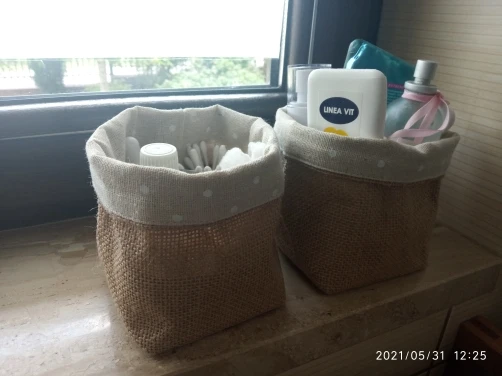 Natychmiastowa wysyłka, towar dotarł bardzo szybko. Koszyczki są małe ale śliczne, bardzo starannie uszyte, ładnie zapakowane. Trochę czuć zapach, ale raczej przyjemnego oleju.