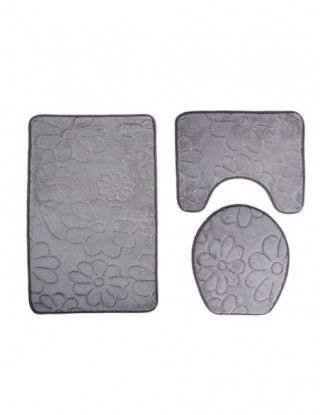 Zeegle Bath Mats Set 3D Cobble Embossing Bathroom Mats Toilet Rugs Non-slip Floor Mats Bathroom Carpets Bath Rugs Shower Mats