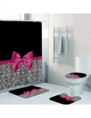 Dziewczęca różowa wstążka wzór w cętki zasłona prysznicowa i dywan do łazienki zestaw nowoczesne gepard Leopard wanna zasłony do łazienki Home Decor