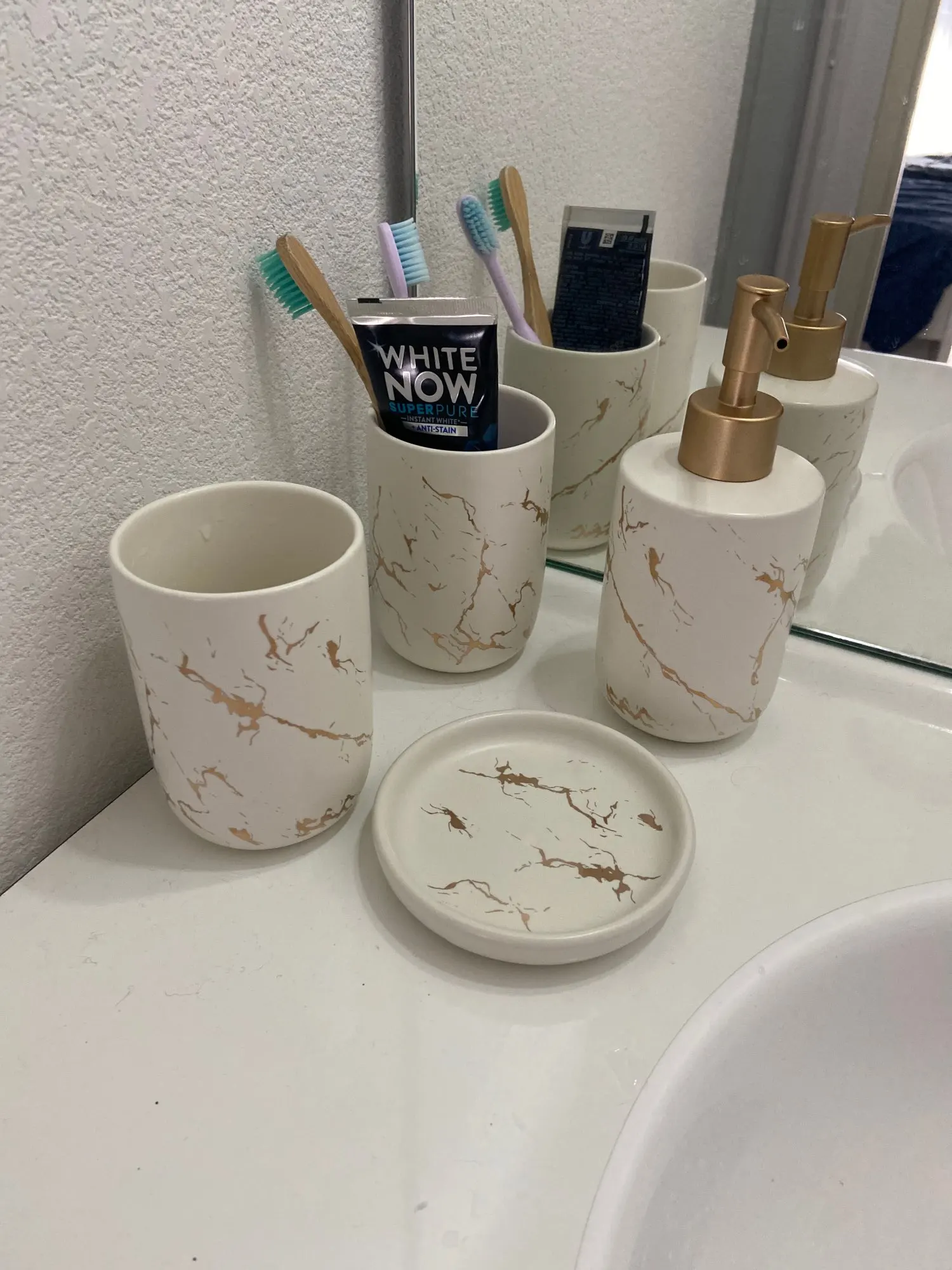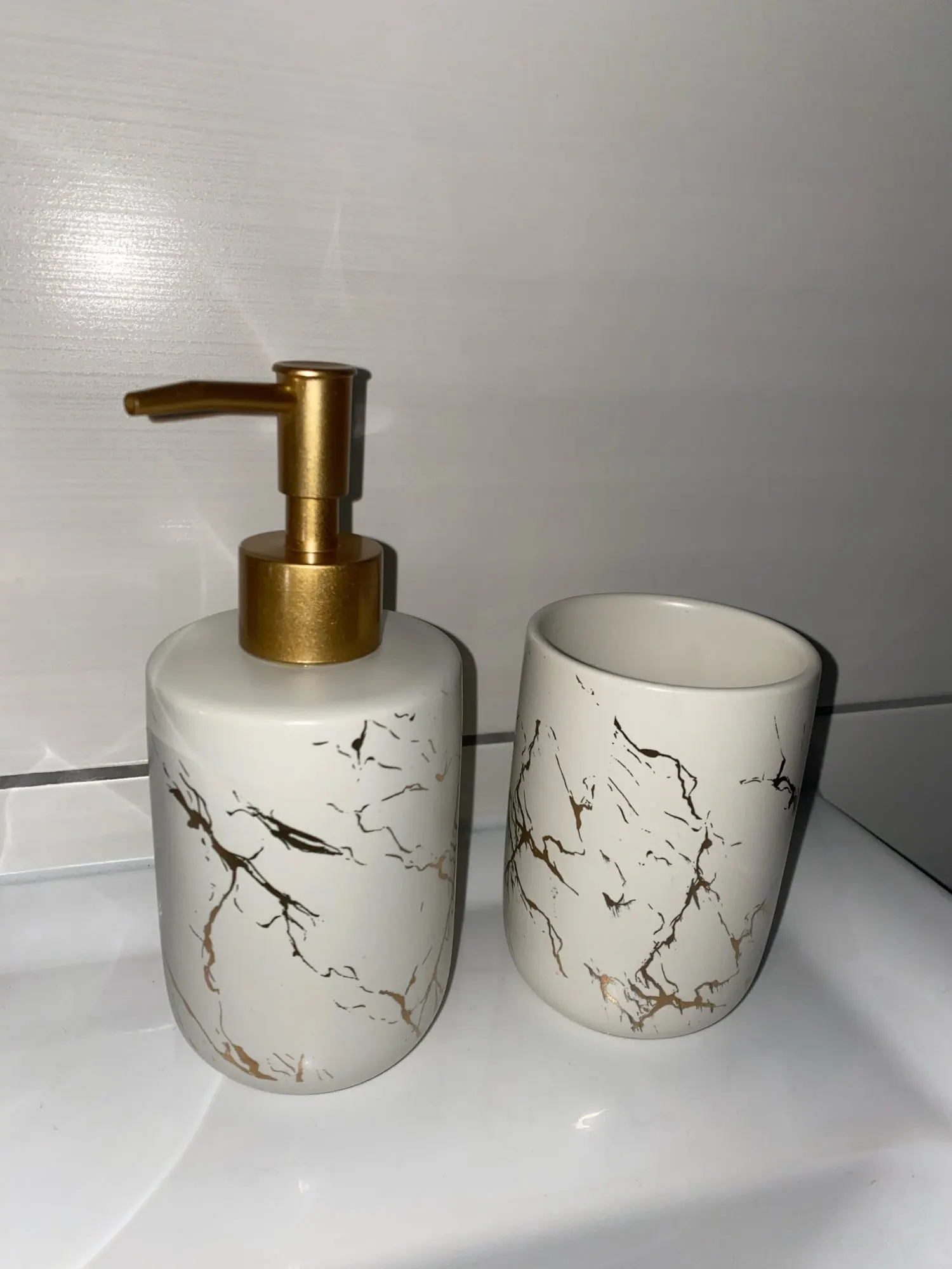 Ceramiczny imitacja marmuru zestaw akcesoriów łazienkowych narzędzia do mycia butelka kubek do płukania ust mydło uchwyt na szcz