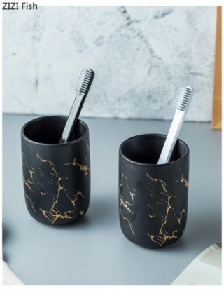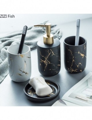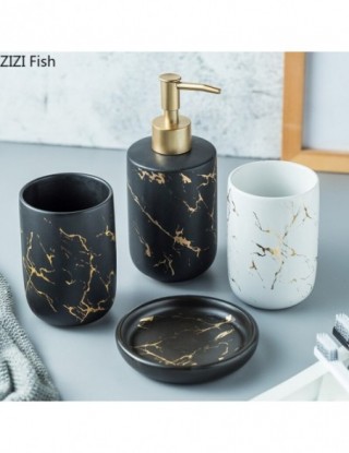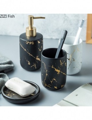 Ceramiczny imitacja marmuru zestaw akcesoriów łazienkowych narzędzia do mycia butelka kubek do płukania ust mydło uchwyt na szczoteczki do zębów artykuły gospodarstwa domowego