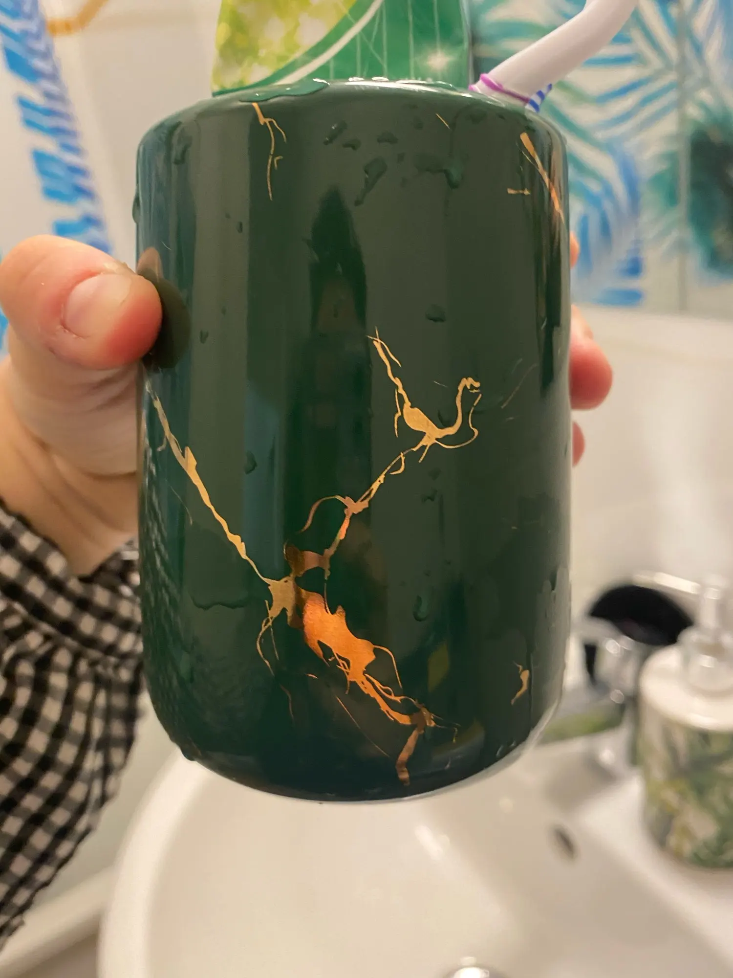 Uchwyt na szczoteczki i pastę do zębów marmurkowa ceramika szczoteczka do zębów w łazience kubek wielofunkcyjna szczoteczka do z