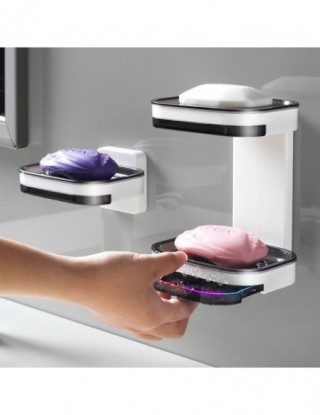 GURET Drainable mydelniczka do łazienki przenośna mydelniczka schowek na ścianę organizator stojaków akcesoria łazienkowe dwuwarstwowy uchwyt