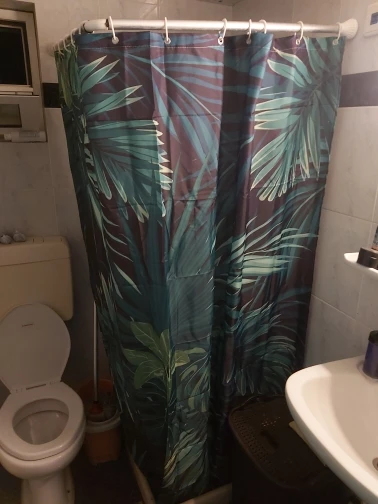 Wysokiej jakości poliester ekologiczny materiał, wodoodporny i nowoczesny design, zasłona prysznicowa idealnie pasuje do potrzeb prysznica lub wanny.