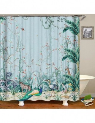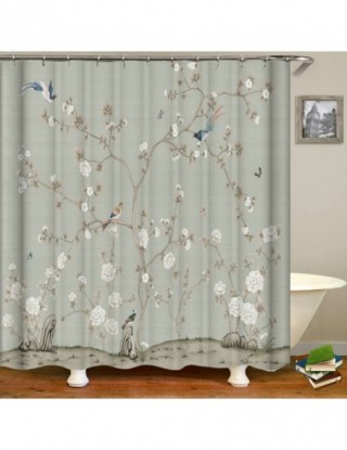 Chiński styl kwiat i ptaki drzewo zasłony prysznicowe zasłona wanny wodoodporny wystrój łazienki z hakami druk 3d zasłona wanny