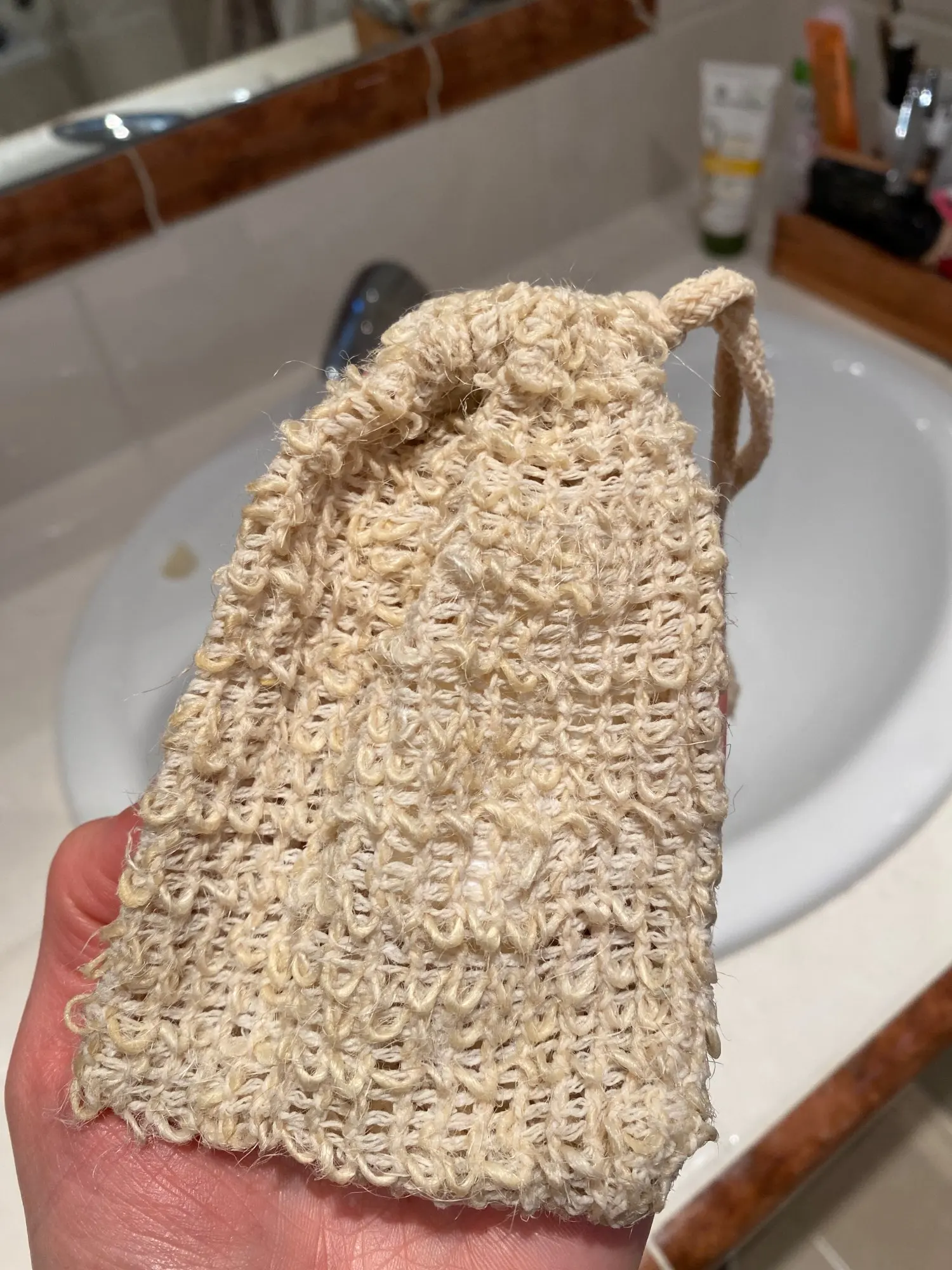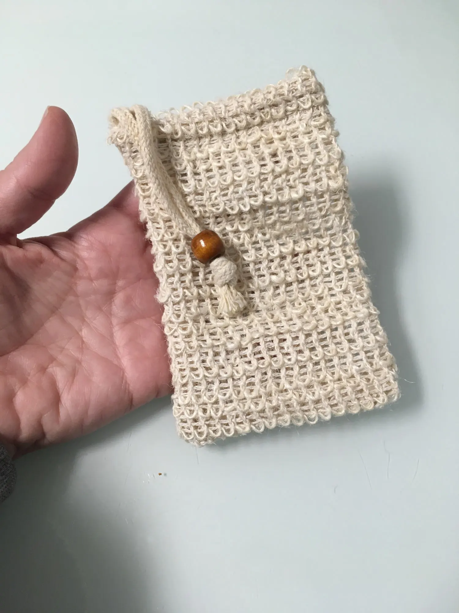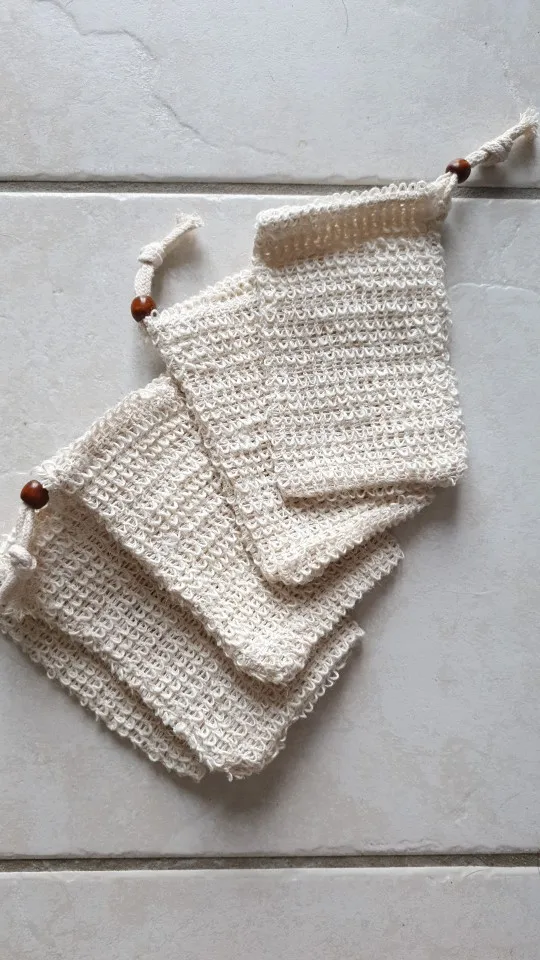 Pratique écologique économique. Super sous la douche pour ces petits bouts de savon. Ça mousse et légèrement effet gant de crin pour une peau douce. Seul le cordon pour fermer le sac n’est pas très pratique