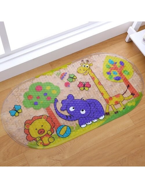 The design is cute and perfect for my small kids! The thickness of the bathmat is good and enough. And thanks for a small present.;)