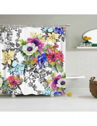 Chiński styl kwiat ptak zasłona prysznicowa wodoodporna kurtyna łazienkowa 3d tkanina z nadrukiem z haczykami dekoracja zasłona prysznicowa