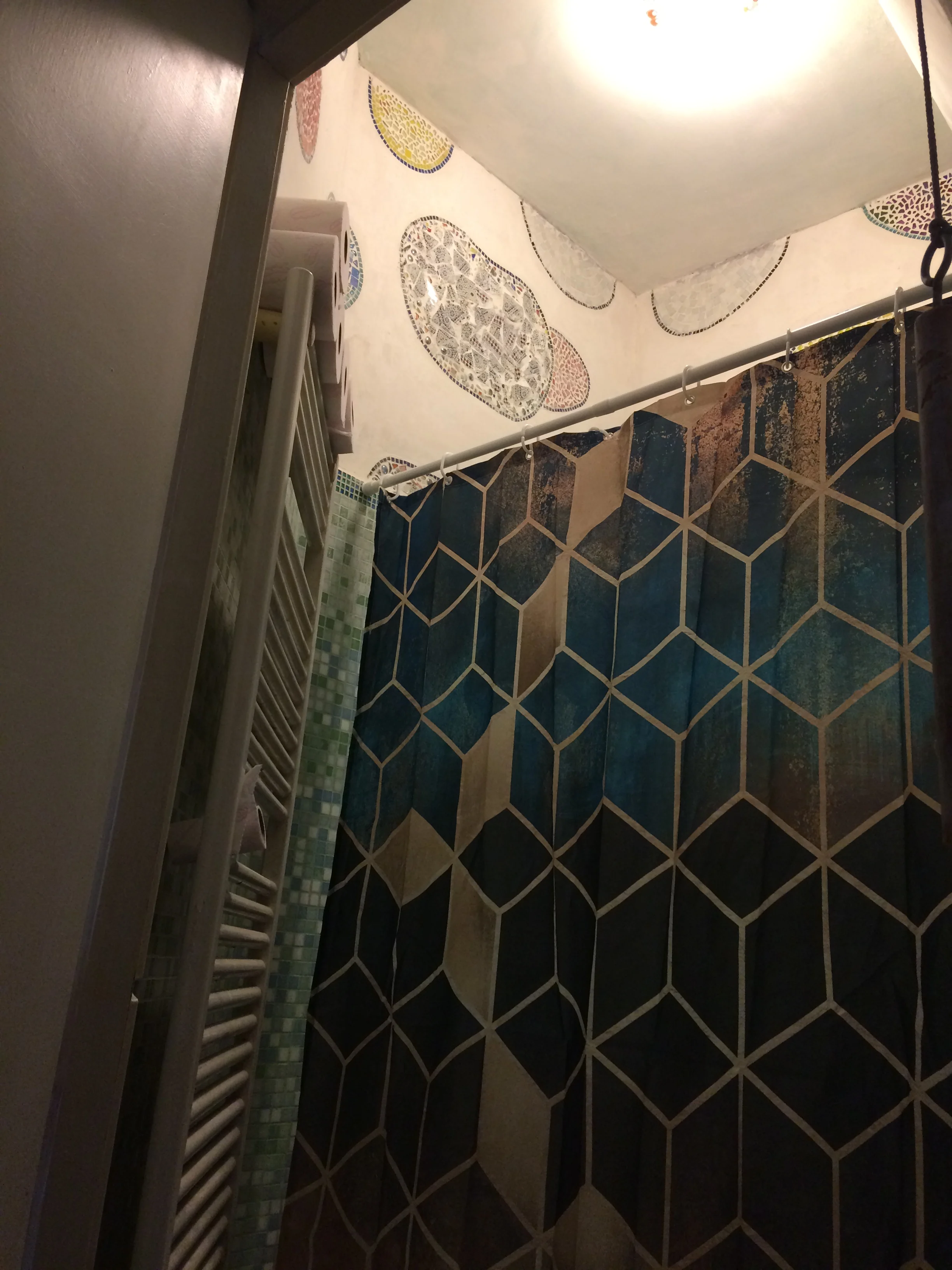Dodaj zasłonę prysznicową do łazienki, aby uzyskać trochę zabawy. Jego kolorowy i spokojny design zapewni odpowiedni ton, dzięki czemu możesz zacząć dzień od razu.