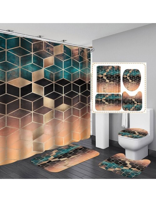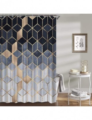 Nadruk geometryczny prysznic zasłona do łazienki z hakiem 3D marmurowy wzór sześciokątów wodoodporna tkanina poliestrowa kurtyna