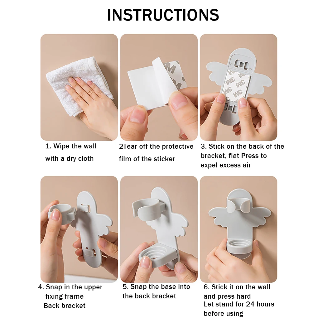 Ten elektryczny wieszaczek na szczoteczkę do zębów jest wyposażony w dwustronne samoprzylepne taśmy, dzięki czemu nie trzeba uderzać w ścianę, oszczędzając czas i siłę do zainstalowania.