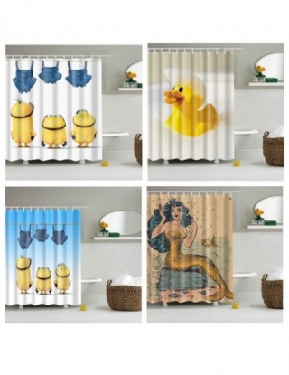 Cartoon zasłony prysznicowe wodoodporna tkanina poliestrowa 3D łazienka żółty Blackout łazienka Anime zasłony długie 180X200cm