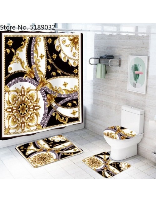 4 sztuki pusty kształt zasłona prysznicowa ze wzorem zestawy z dywanik kąpielowy toaleta pokrywa mata podłogowa wodoodporna zasłona wanny w stylu Vintage