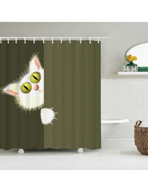 Kot zasłony prysznicowe łazienka zasłona prysznicowa śliczne 3D tkaniny zasłona z hakami śmieszne wodoodporny prysznic zasłony lub mata