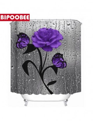 3D Butterfly tkanina w kwiaty wodoodporny prysznic kurtyna zasłony łazienkowe zestaw niebieska róża antypoślizgowy dywanik pokro