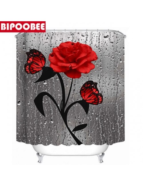 3D Butterfly tkanina w kwiaty wodoodporny prysznic kurtyna zasłony łazienkowe zestaw niebieska róża antypoślizgowy dywanik pokro