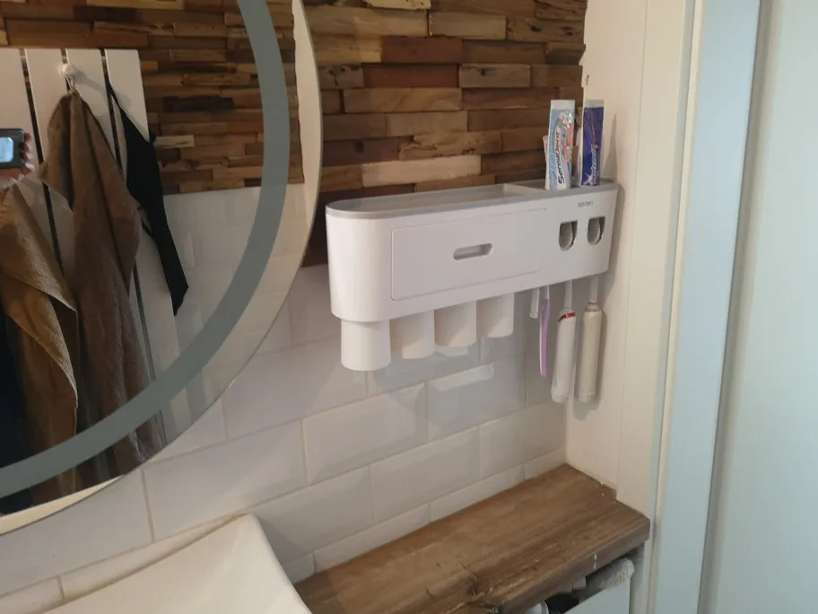 ONEUP naścienny uchwyt na szczoteczki do zębów magnetyczny podwójny automatyczny dozownik pasty do zębów dozownik do przechowywa