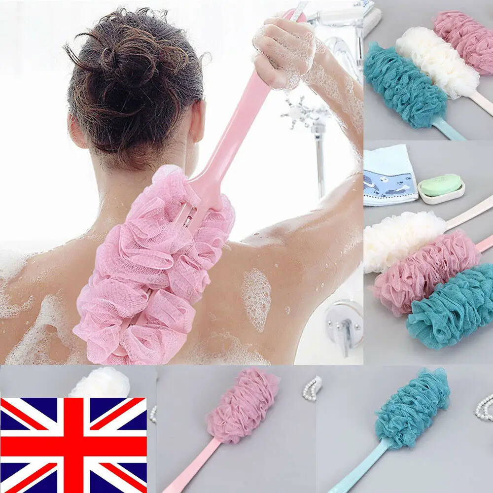 Długa rączka kąpiel Loofah prysznic piłka gąbka siatka wanna szczotka do pleców produkty do kąpieli