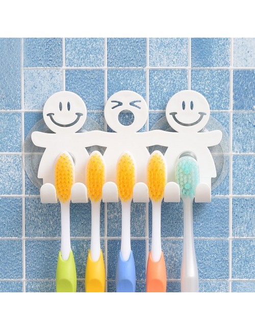 Łazienka przyssawki 5 pozycji uchwyt na szczoteczki do zębów stojak uchwyt do montażu na ścianie zabawny uśmiech twarzy szczoteczka do zębów stojak organizer